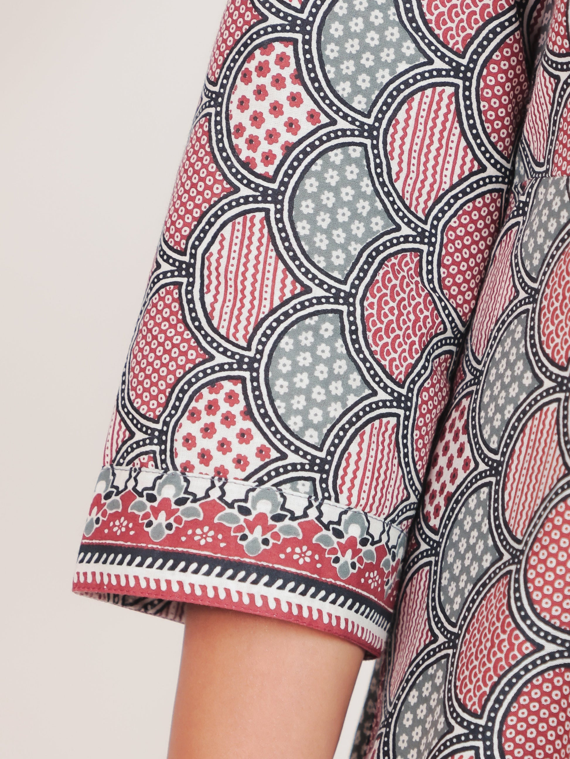 This Red Flared dress in Soft Cotton is perfect for effortless daily wear. The Geometric pattern and delicate work bring a modern yet artisanal touch. Lightweight and breathable, it’s ideal for warm days or casual outings. Pair with sandals or sneakers for a relaxed vibe. Easy to care for ensures hassle-free upkeep.