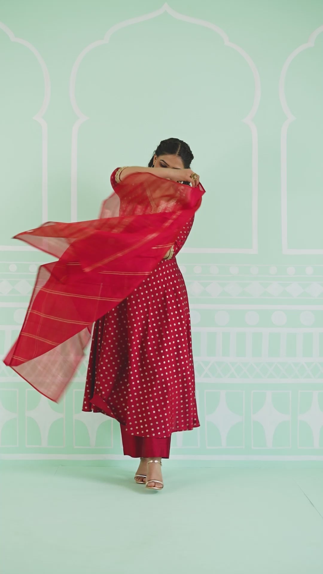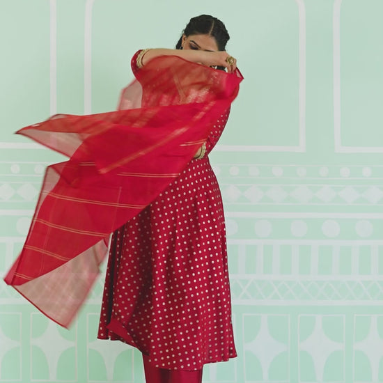 Poly Chanderi Gold foil Anarkali Red Kurta