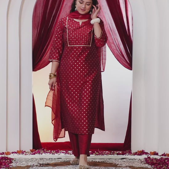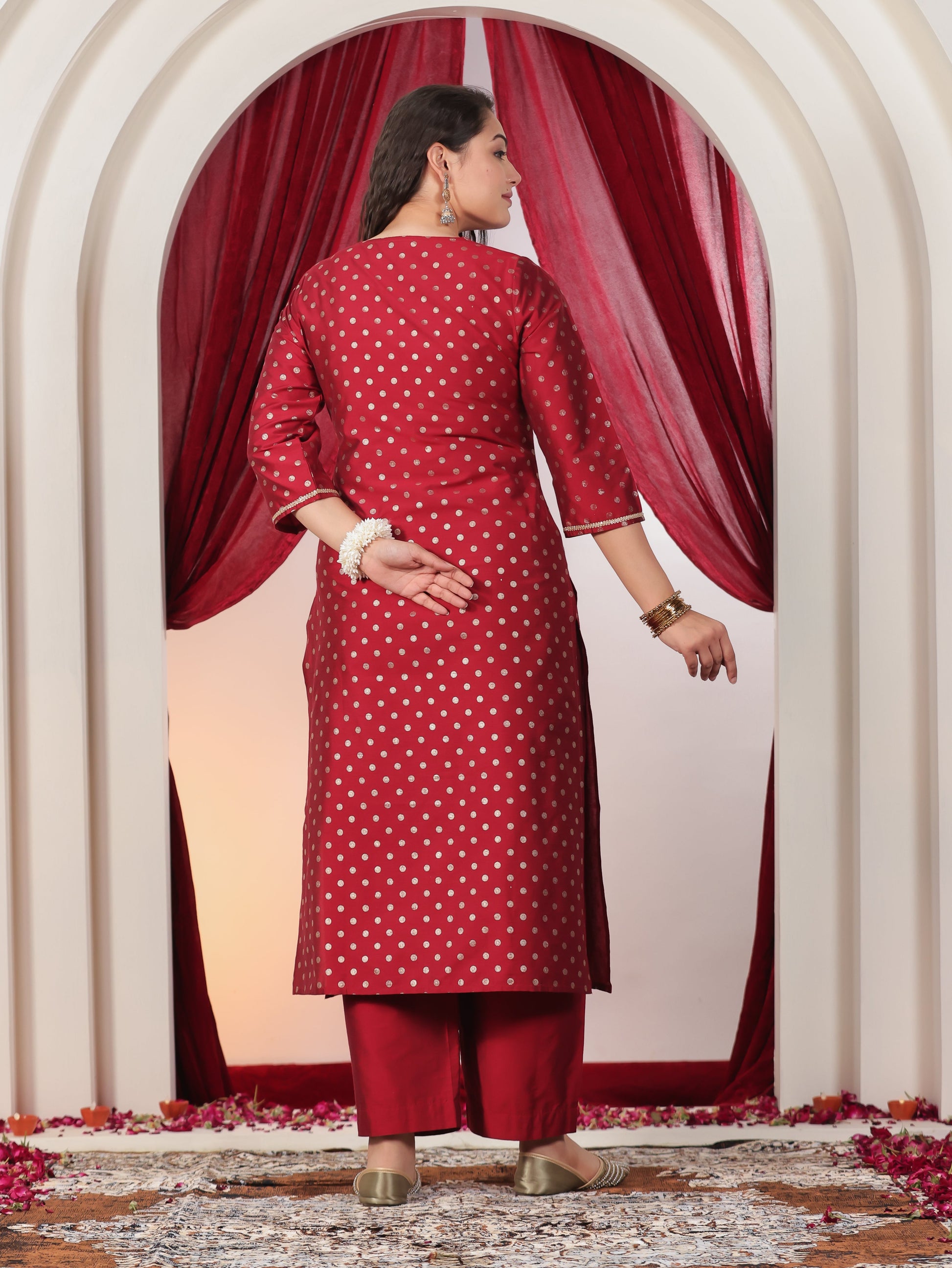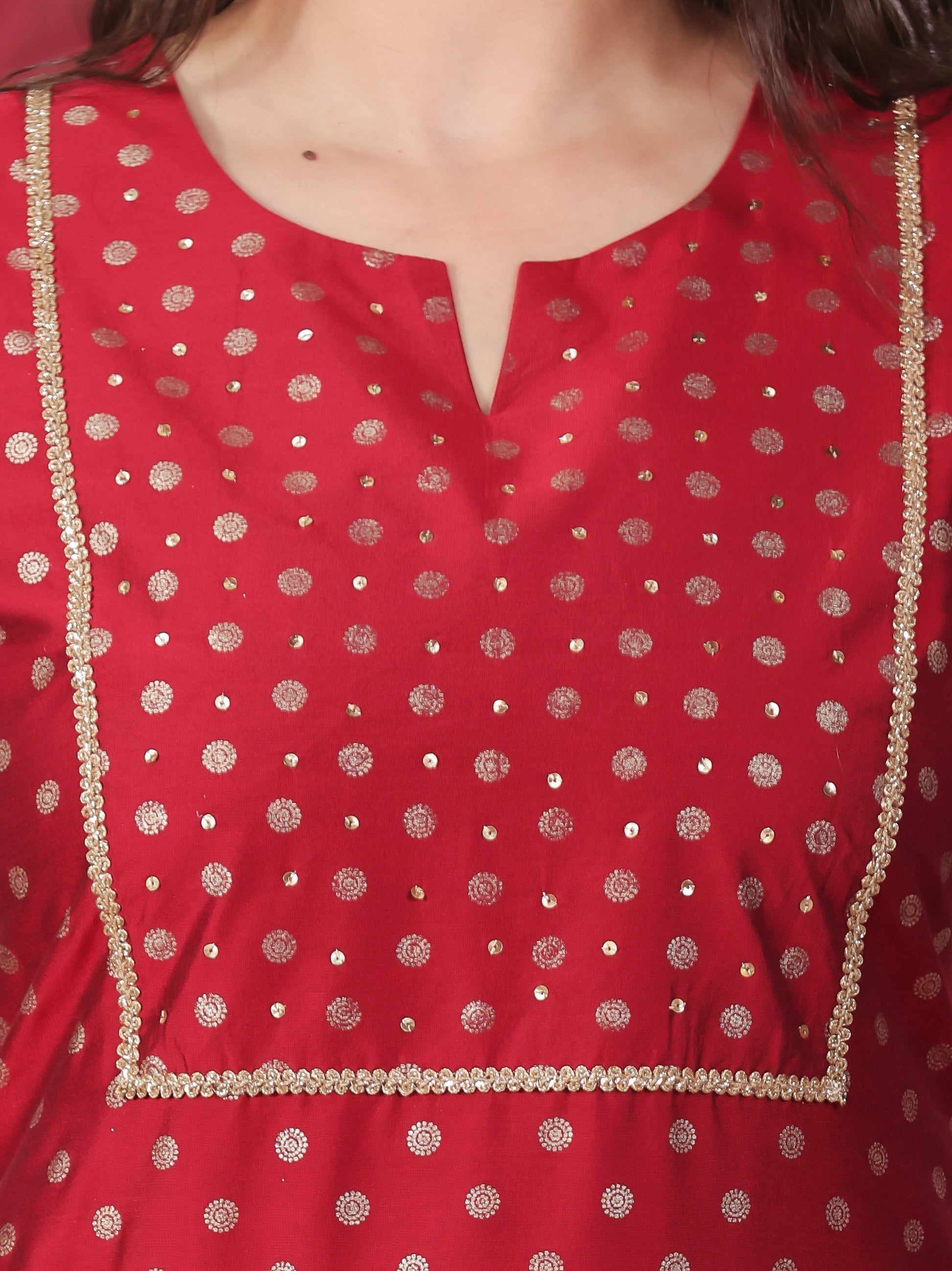 Embroidered Roman silk Gold foil Straight Red Kurta