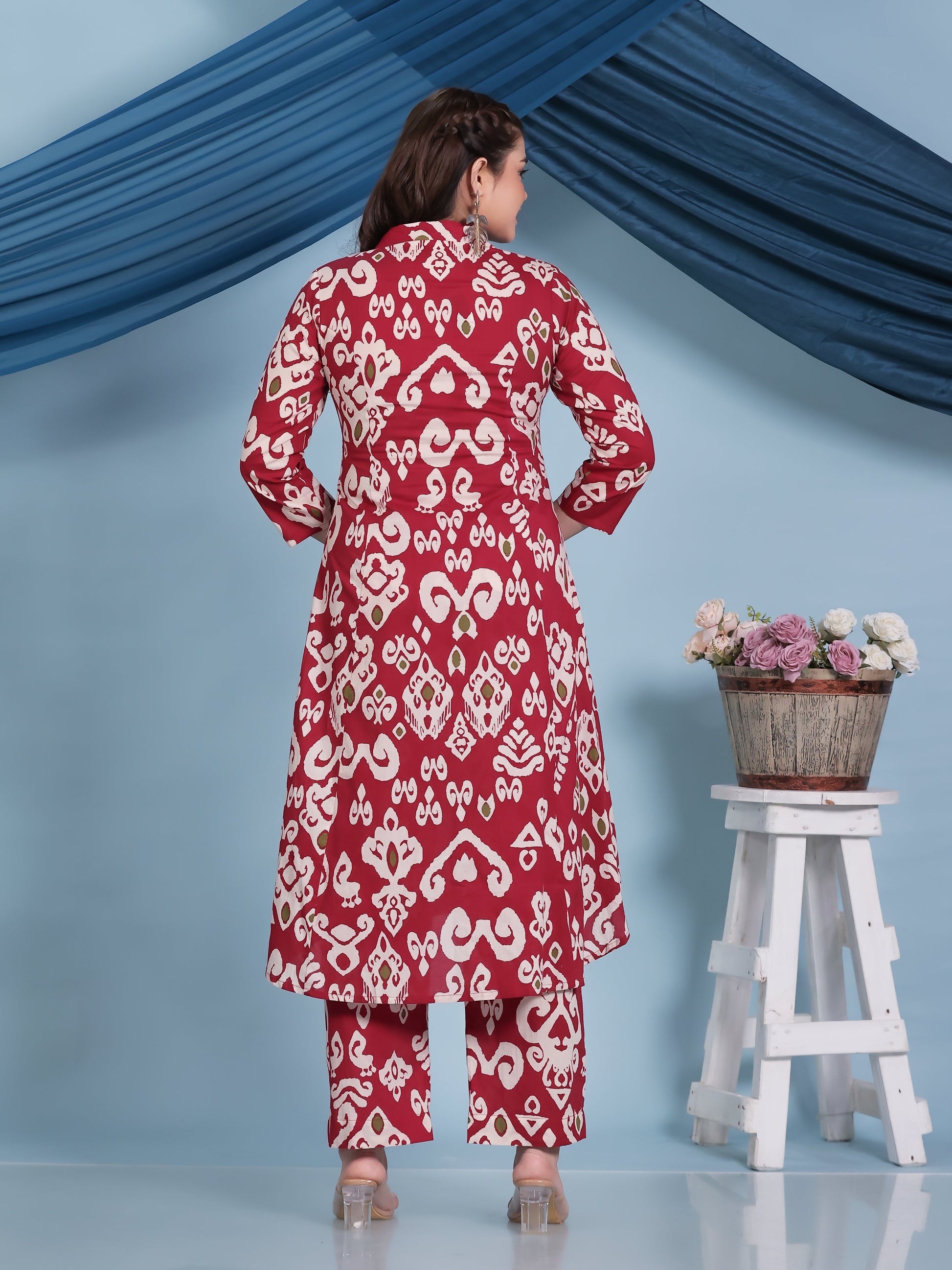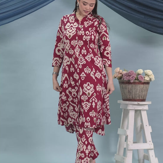 Soft Cotton Ikat High Low Red Kurta