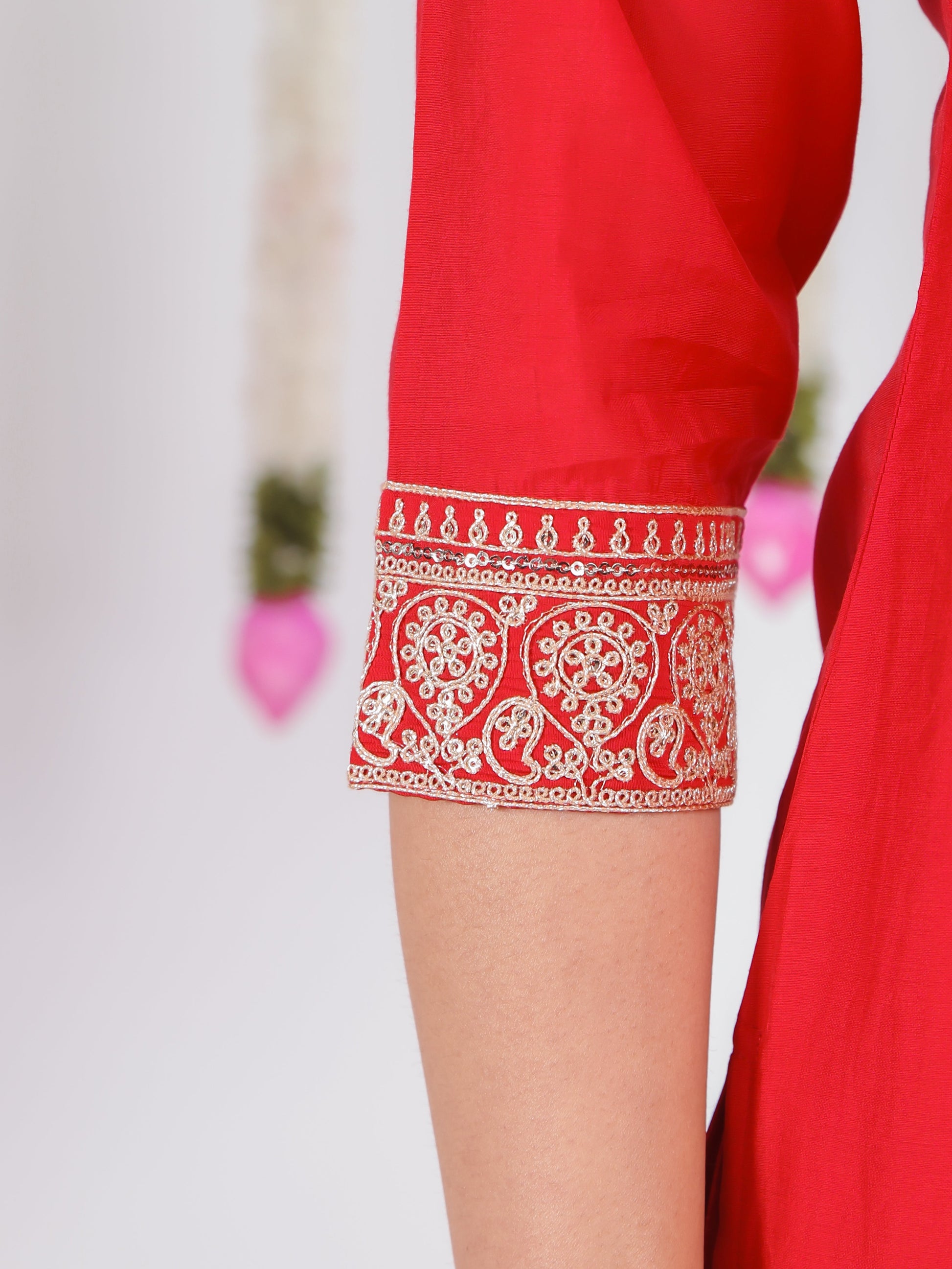 Embroidered Muslin Solid Straight Red Kurta