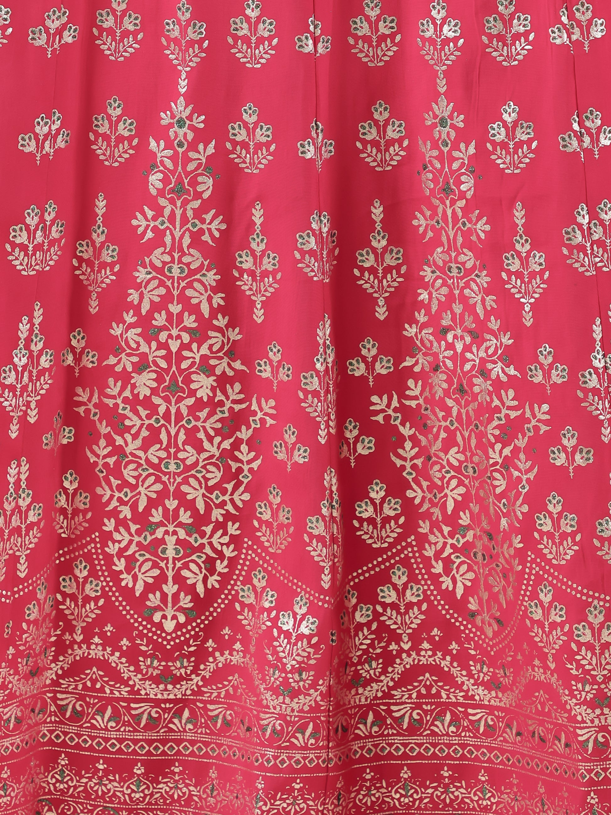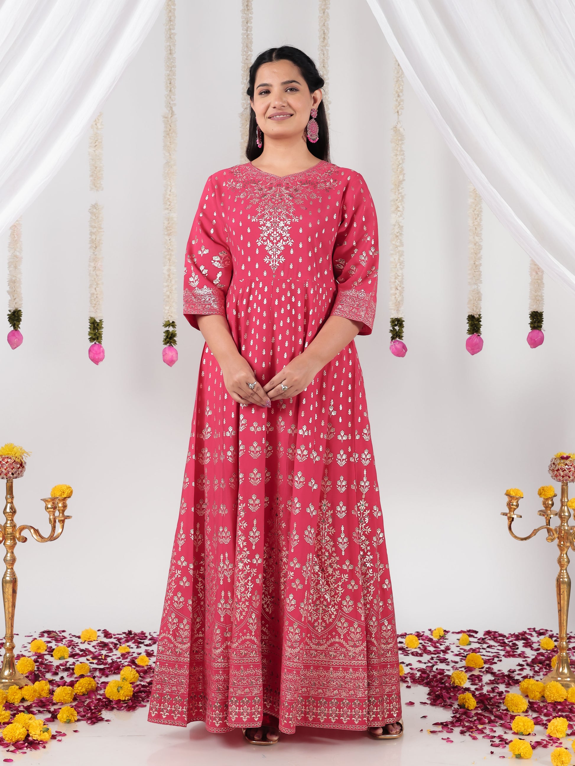 Vertigan Gold foil Anarkali Royal Pink Kurta