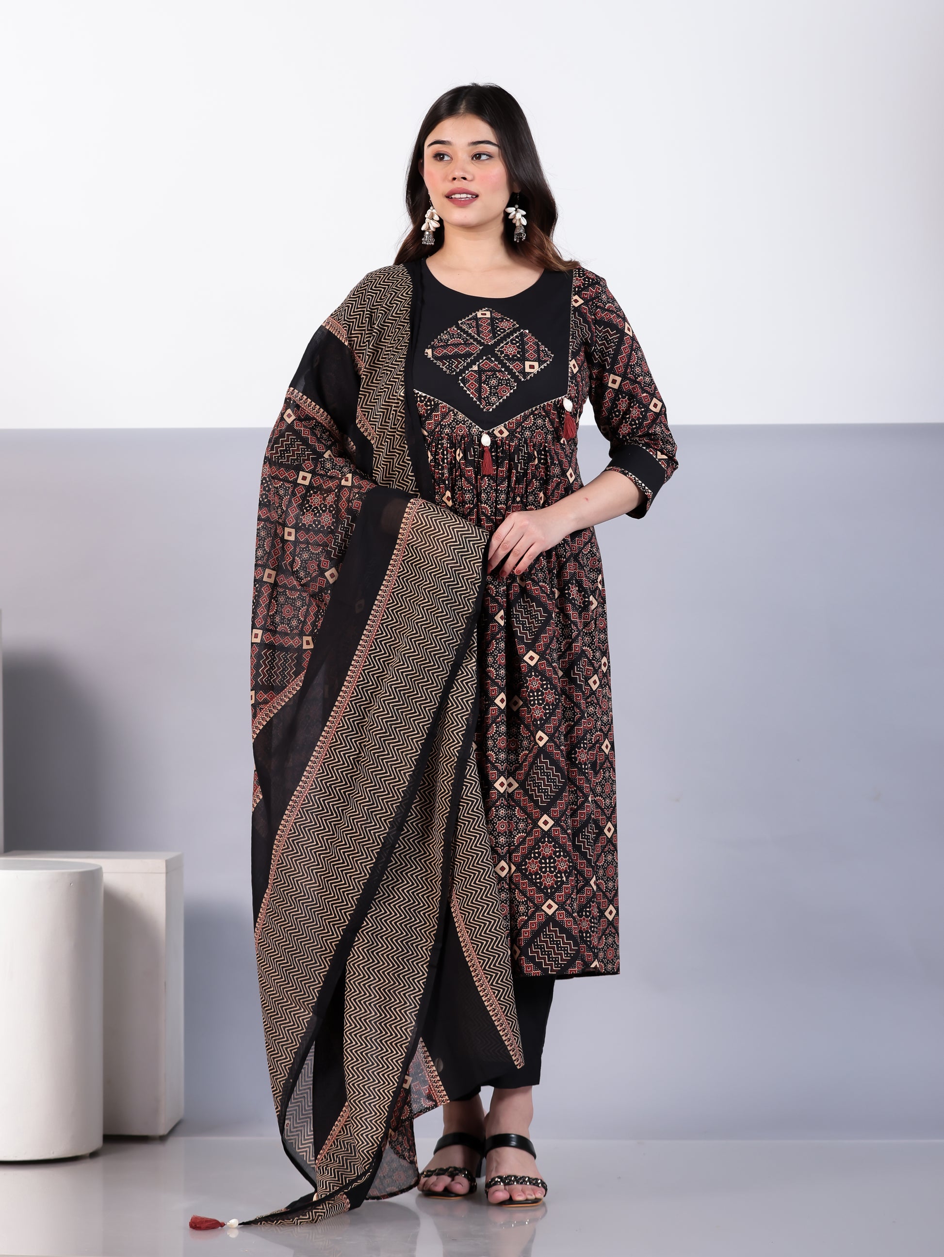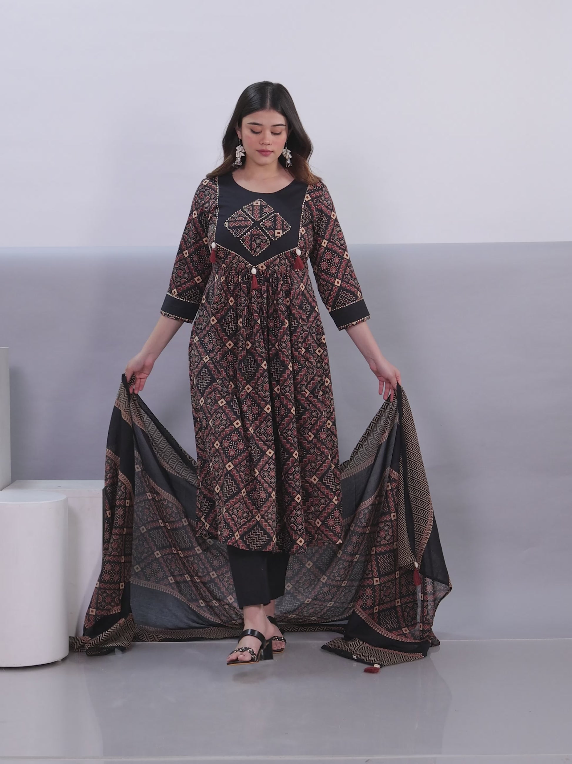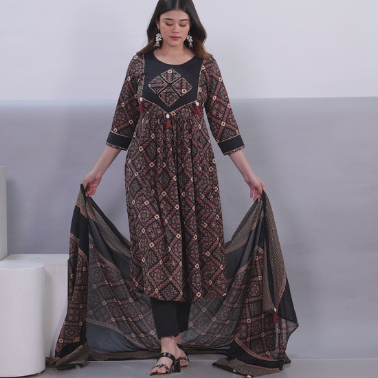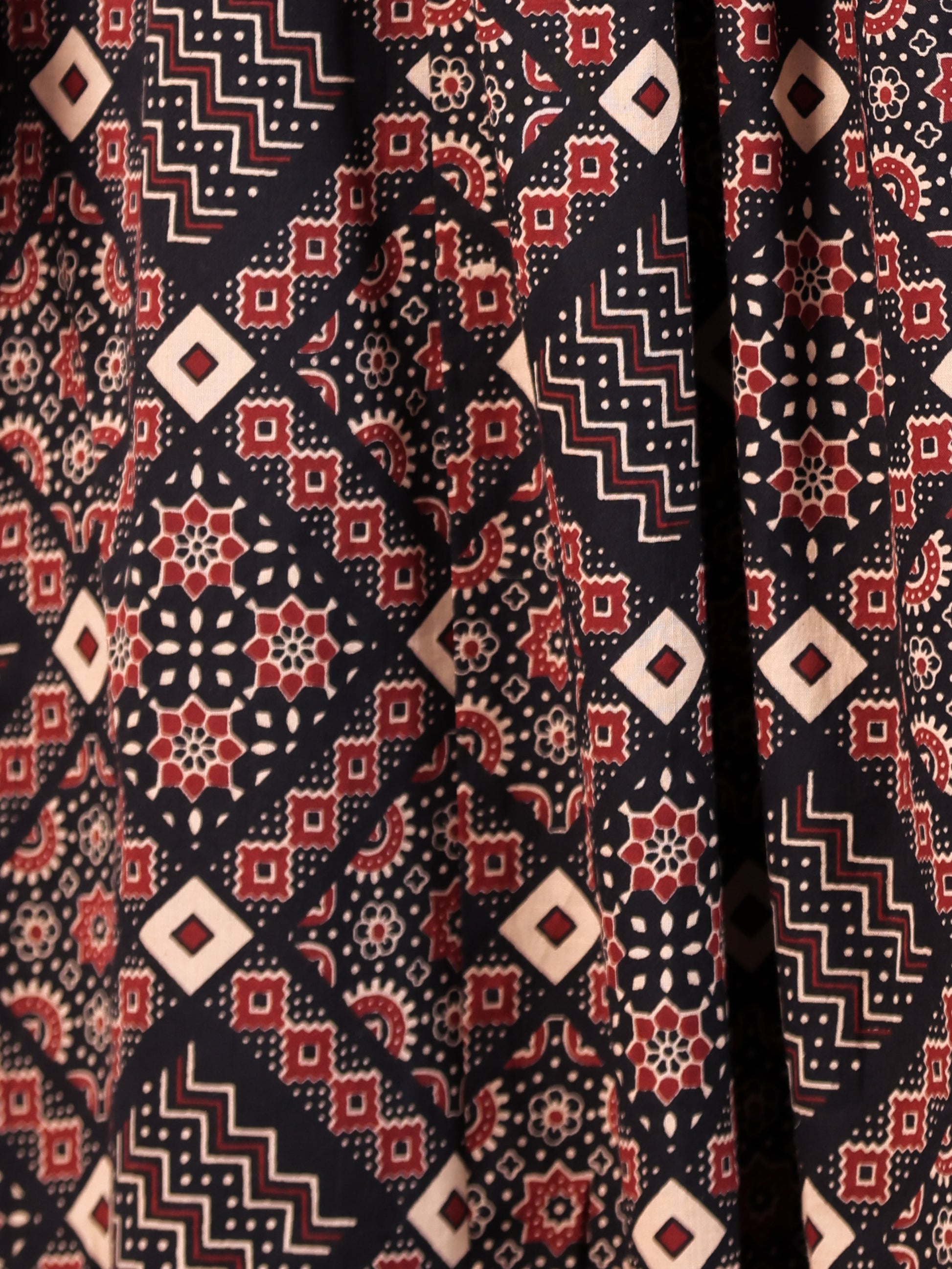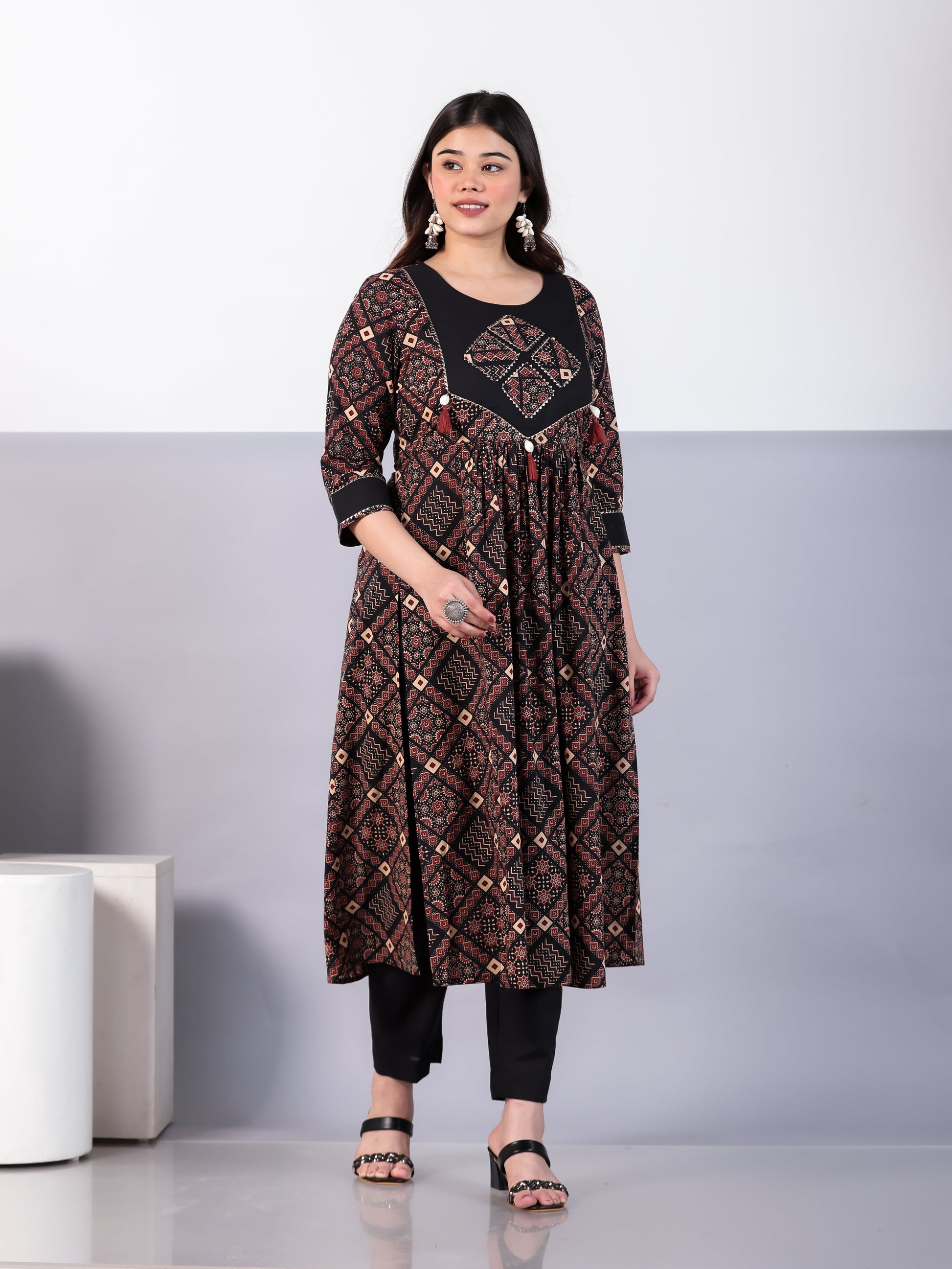 Embroidered Soft Cotton Geometric Flared Rust Kurta
