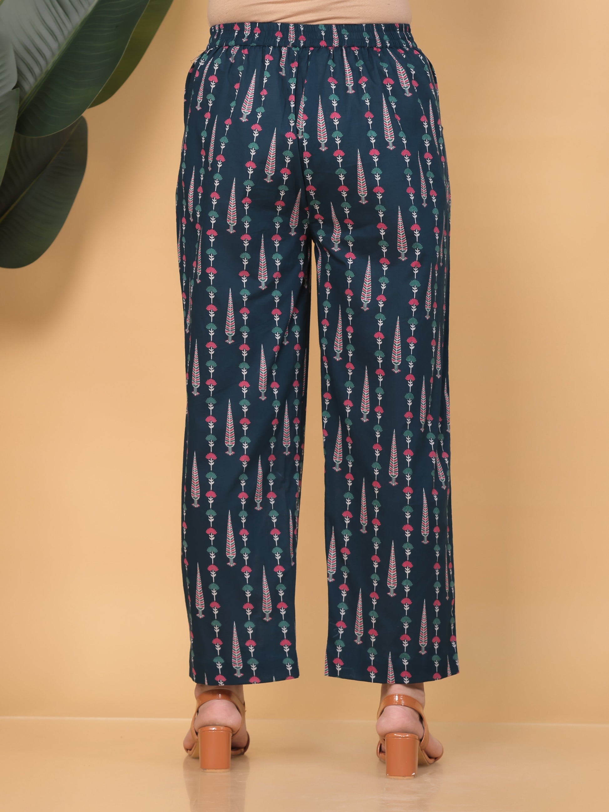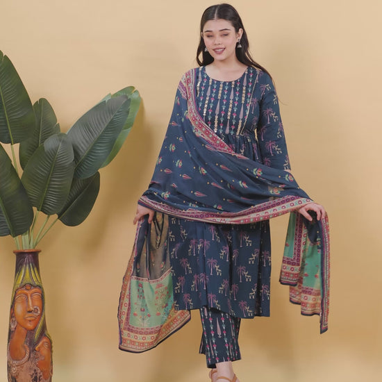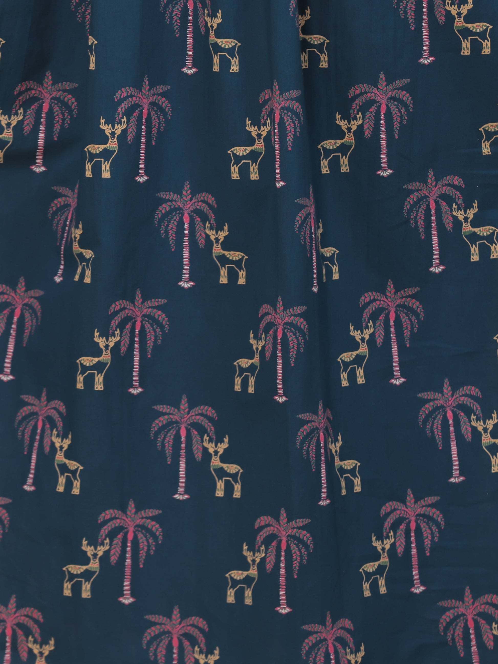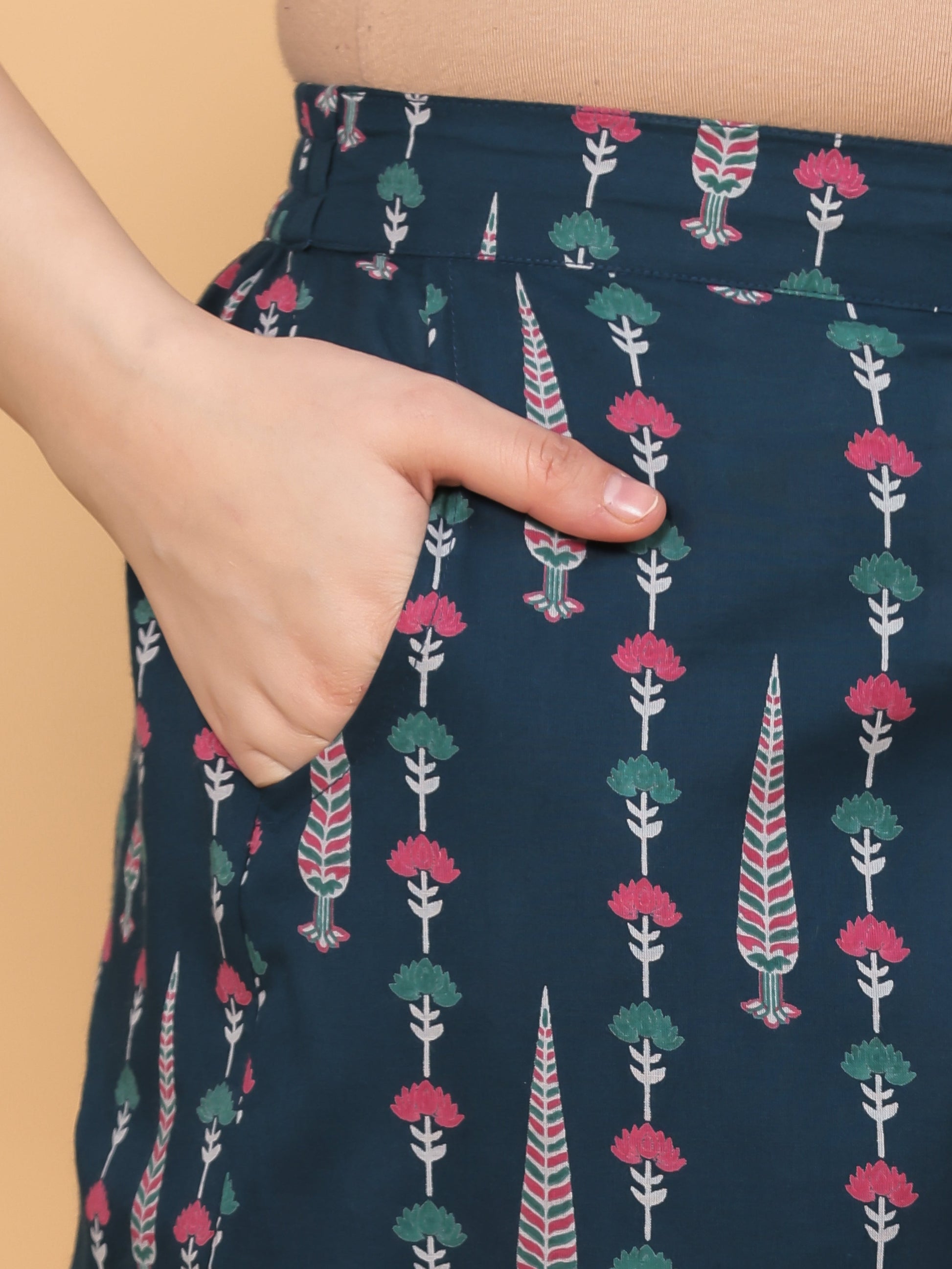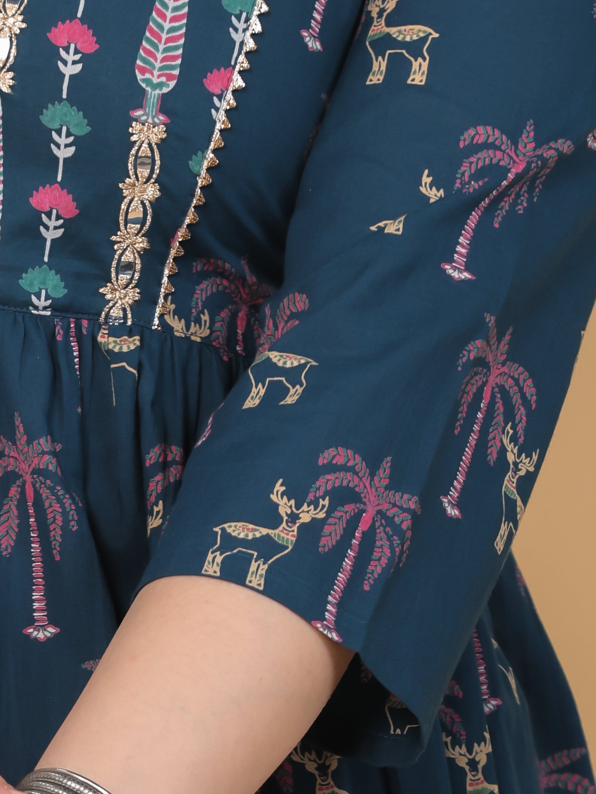 Embroidered Soft Cotton Abstract Flared Teal Kurta