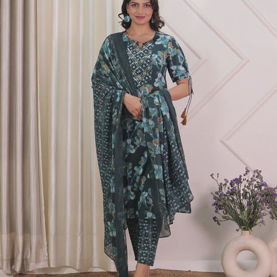 Embroidered Soft Cotton Floral Straight Teal Kurta