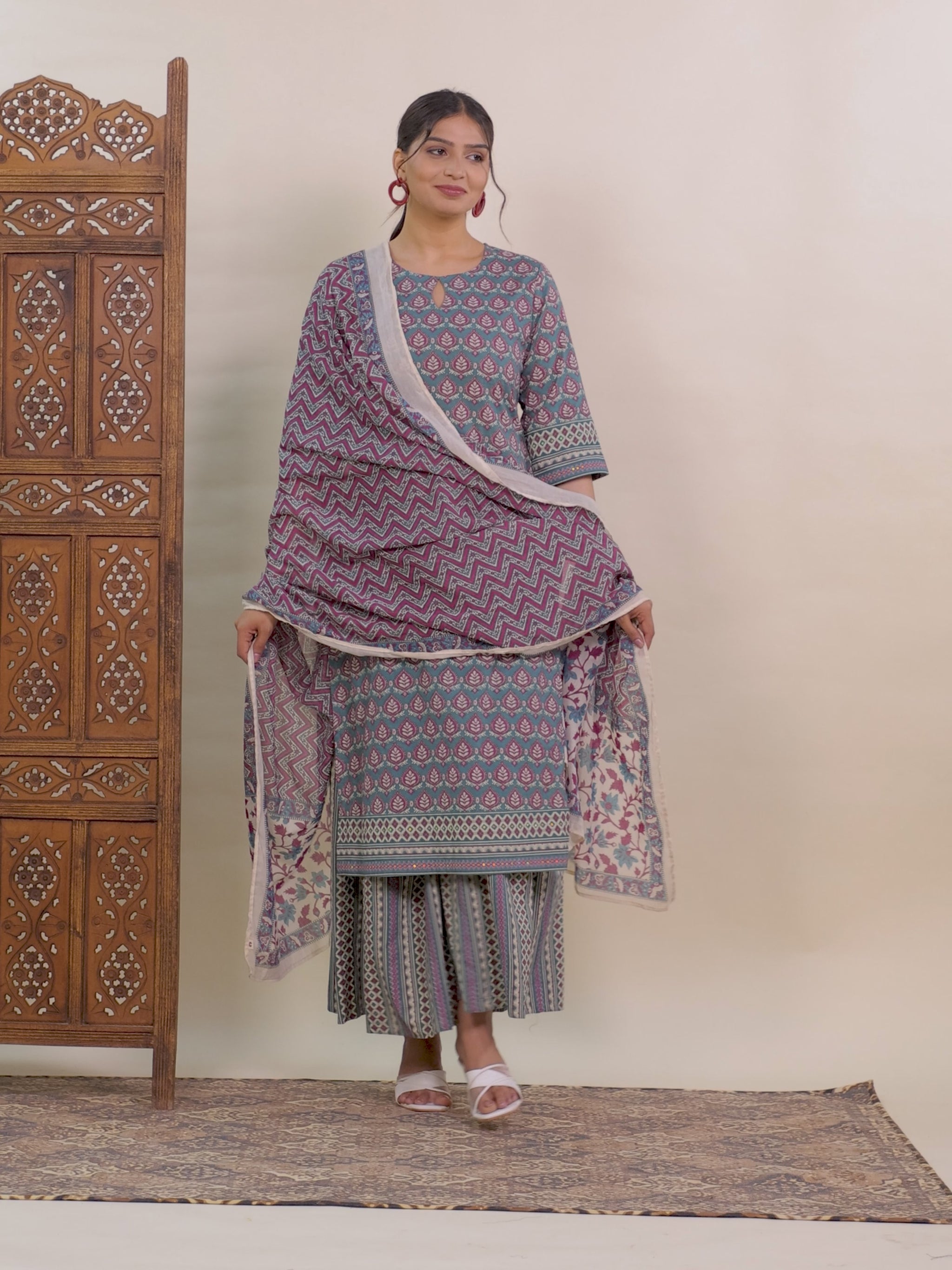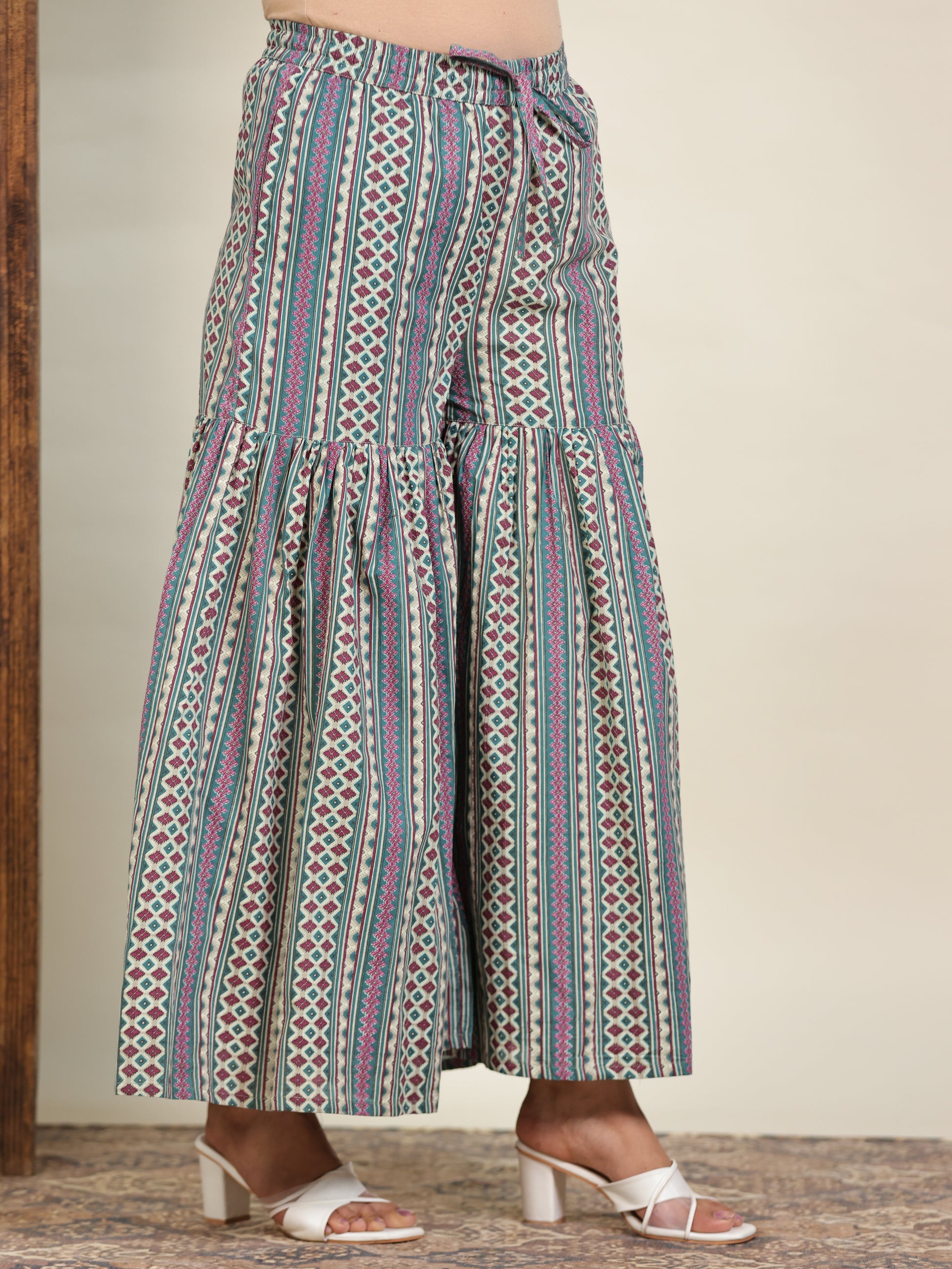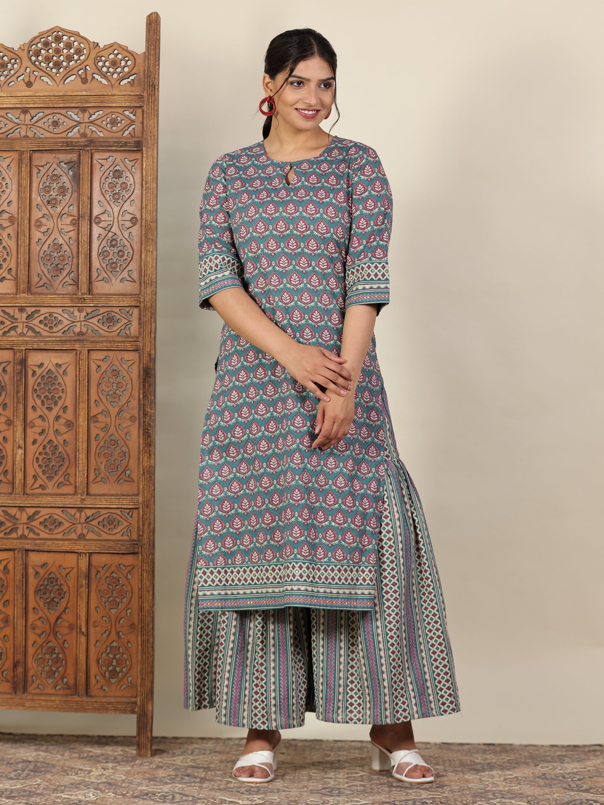 This Multicolor Soft Cotton kurta with a Straight flare is designed for comfort and style. Featuring a Keyhole neckline, 3/4 Sleeve sleeves, and a graceful Calf Length hemline, it’s perfect for festive wear or semi-formal gatherings. The Geometric highlights add depth and texture, making it a standout piece. Accessorise with a contrasting dupatta and keep it pristine by following proper care instructions.