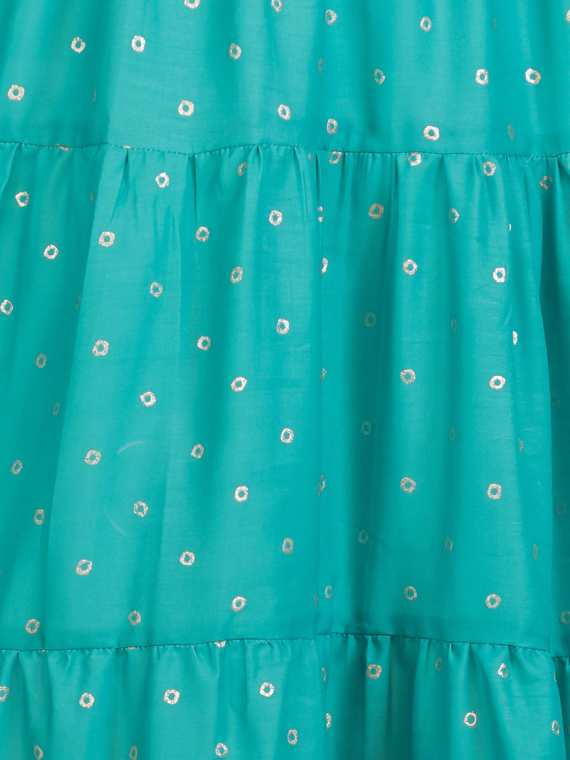 Embroidered Romen silk Gold foil Anarkali Teal Kurta