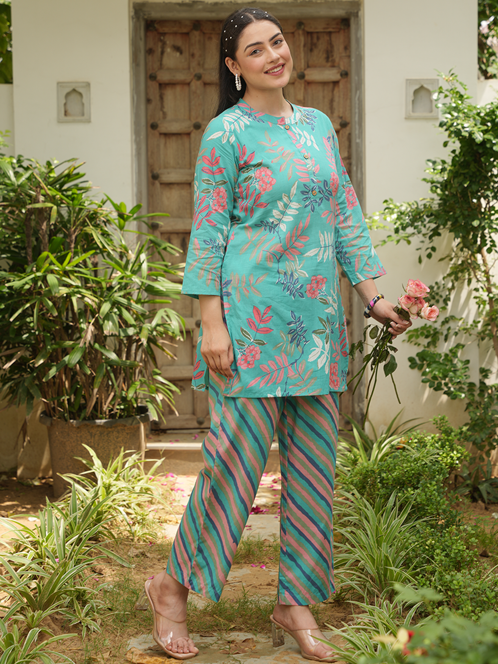 Crafted from breathable Soft Cotton, this Straight kurta in Turquoise Blue blends traditional design with everyday comfort. The Foliage finish adds artisanal charm, while the Short silhouette ensures effortless elegance. Style with palazzos or leggings for versatile looks, from workdays to weekend outings. Designed for easy care, this kurta stays beautiful with simple care instructions.