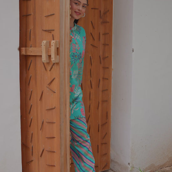 Soft Cotton Foliage Straight Turquoise Blue Kurta