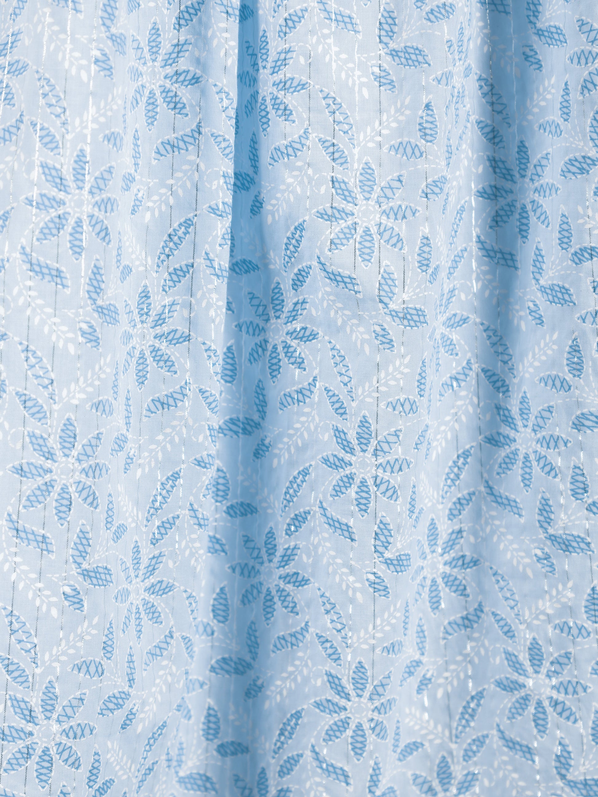 This Turquoise Lurex Cotton kurta with a A-line flare is designed for comfort and style. Featuring a Round neckline, 3/4 Sleeve sleeves, and a graceful Calf Length hemline, it’s perfect for festive wear or semi-formal gatherings. The Floral highlights add depth and texture, making it a standout piece. Accessorise with a contrasting dupatta and keep it pristine by following proper care instructions.