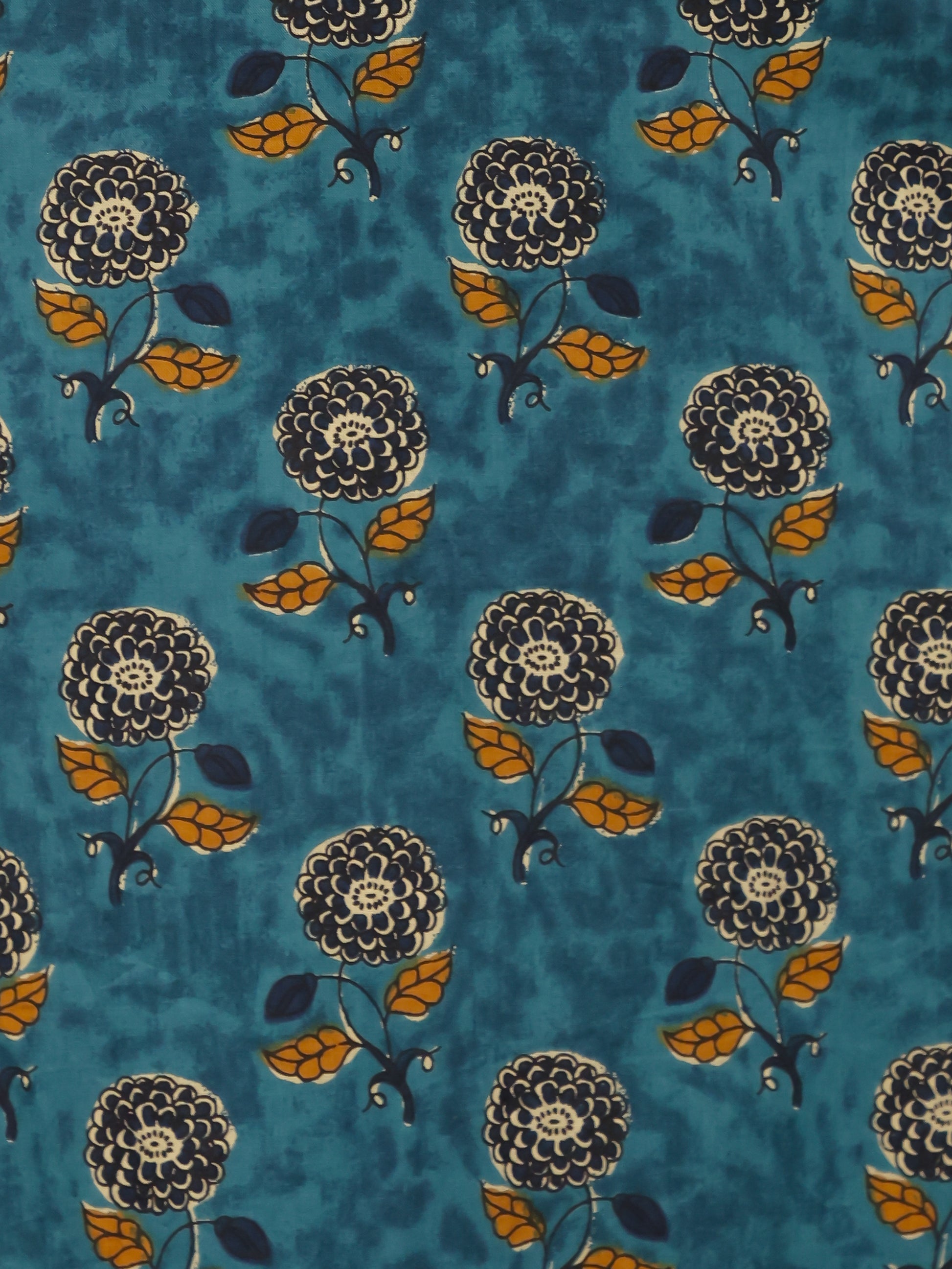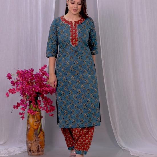 Embroidered Soft Cotton Floral Straight Turquoise Kurta