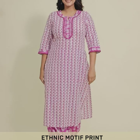 This Pink Soft Cotton kurta with a Straight flare is designed for comfort and style. Featuring a Round neckline, 3/4 Sleeve sleeves, and a graceful Calf Length hemline, it’s perfect for festive wear or semi-formal gatherings. The Abstract highlights add depth and texture, making it a standout piece. Accessorise with a contrasting dupatta and keep it pristine by following proper care instructions.