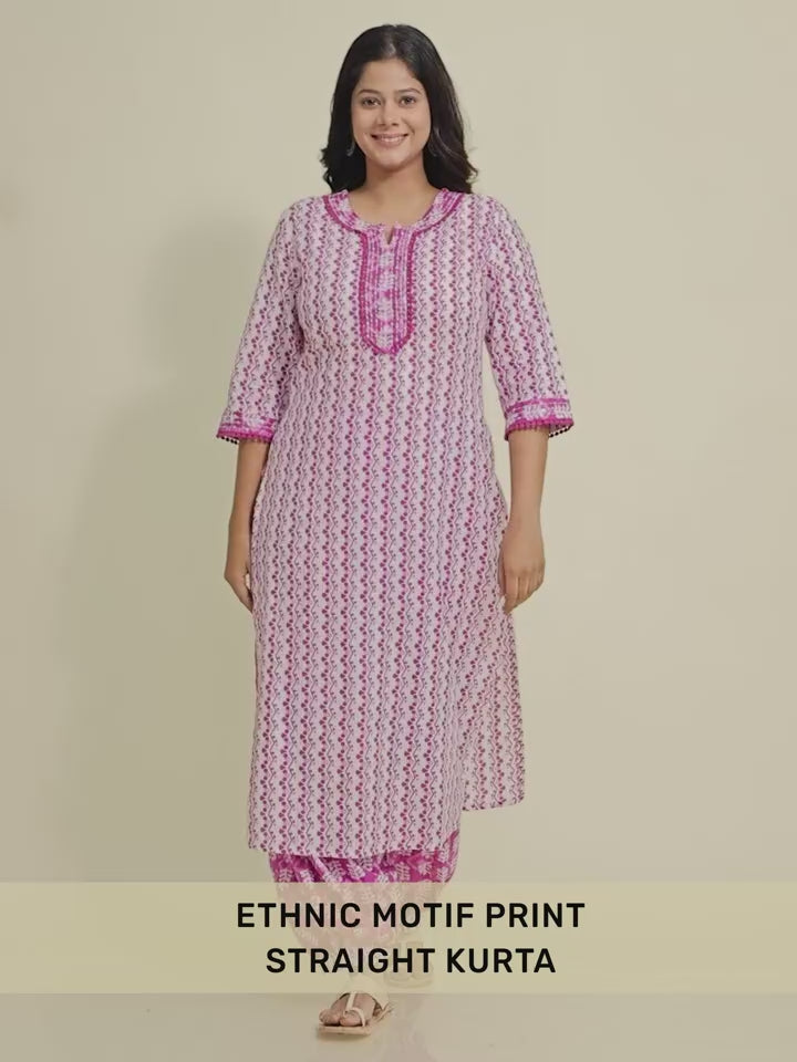 Embroidered Soft Cotton Abstract Straight Pink Kurta