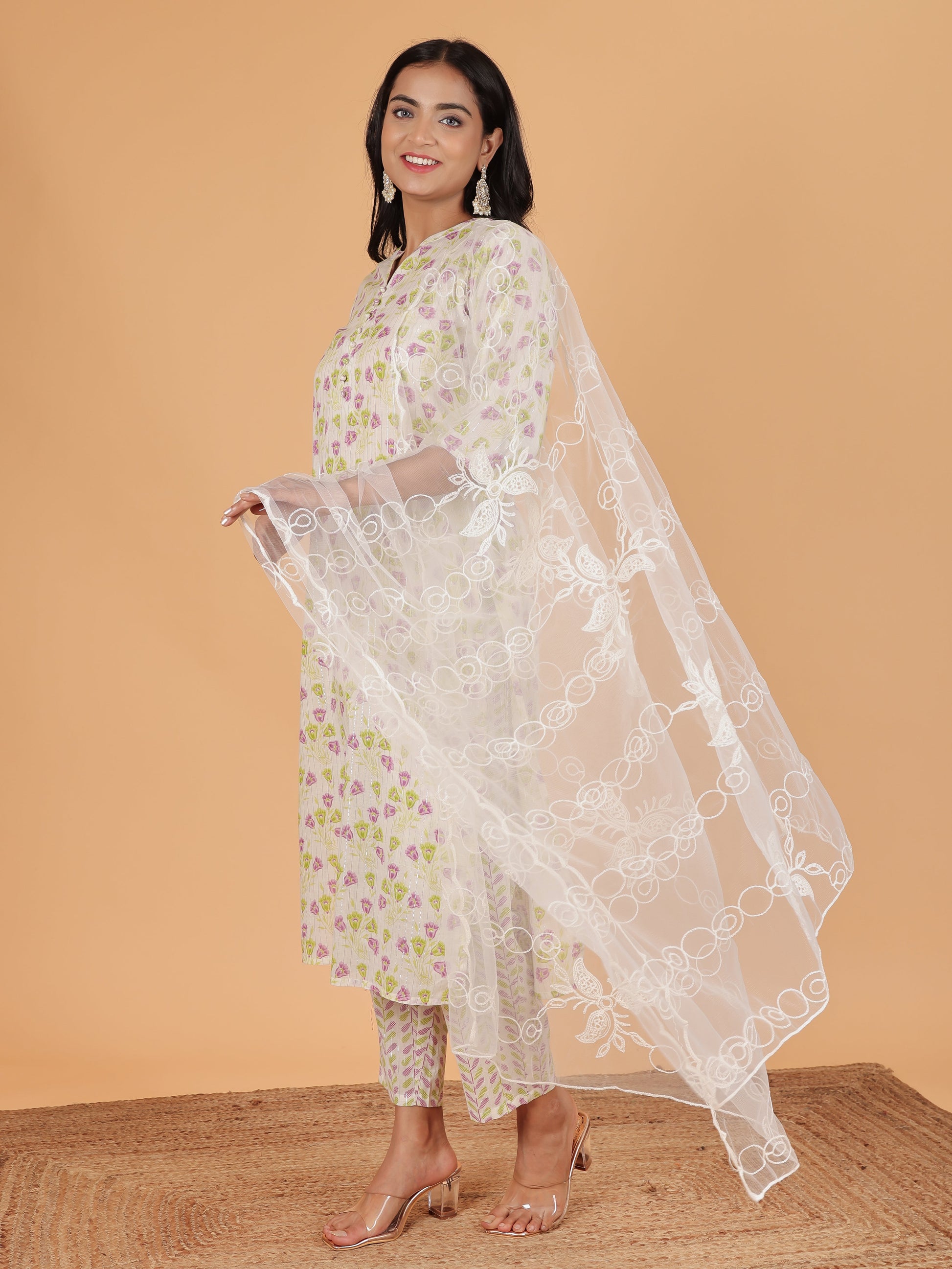 This White Lurex Cotton kurta with a Straight flare is designed for comfort and style. Featuring a Mandarin/Chinese neckline, 3/4 Sleeve sleeves, and a graceful Calf Length hemline, it’s perfect for festive wear or semi-formal gatherings. The Floral highlights add depth and texture, making it a standout piece. Accessorise with a contrasting dupatta and keep it pristine by following proper care instructions.