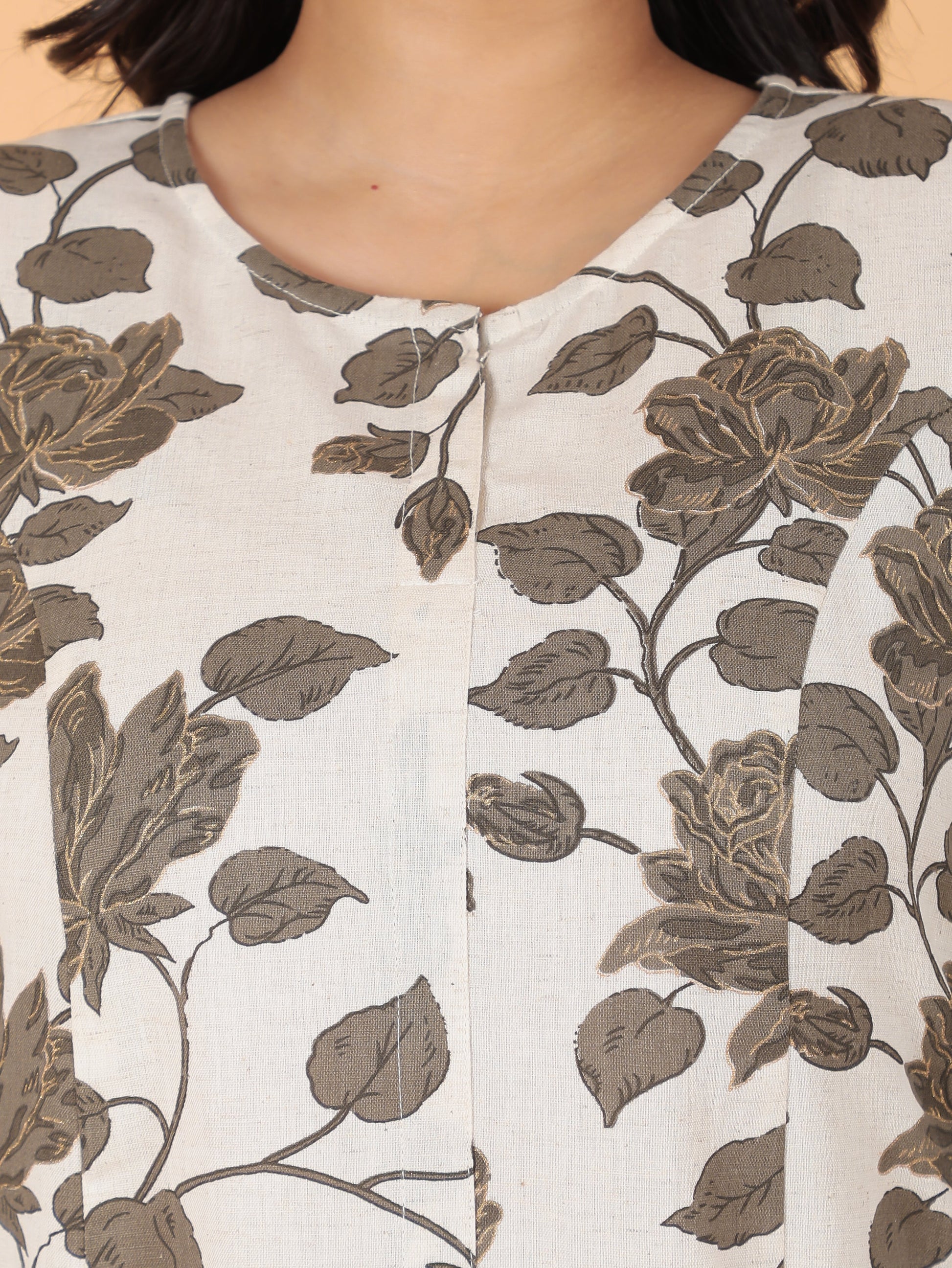 Elevate your ethnic wardrobe with this Linen Cotton kurta in a stunning White hue. Featuring an elegant A-line fit and striking Floral accents, it’s perfect for festive celebrations or family gatherings. The Round neckline and 3/4 Sleeve provide all-day comfort. Team with gold-toned accessories for an effortlessly chic vibe. Maintain its charm by following proper care instructions.