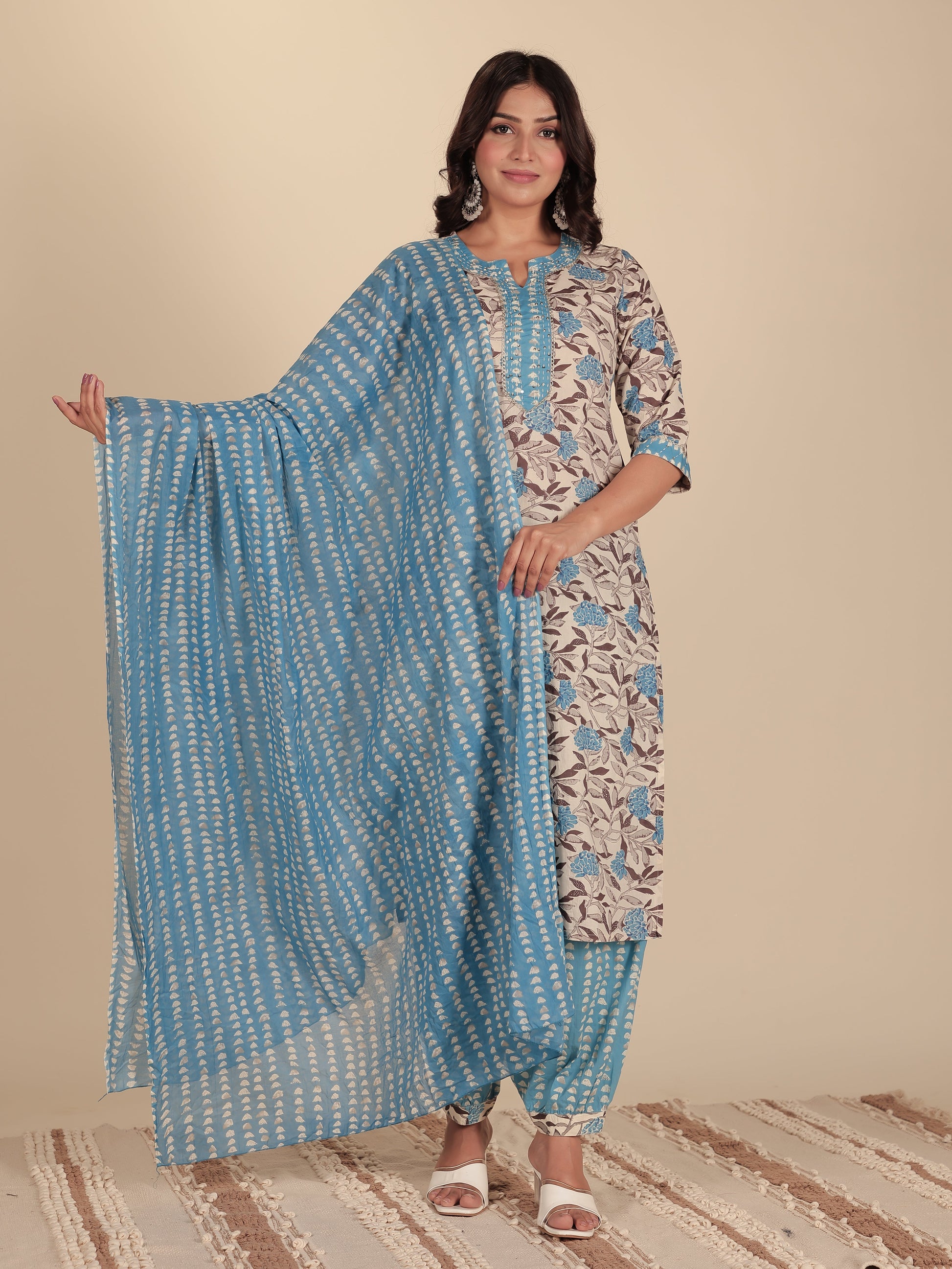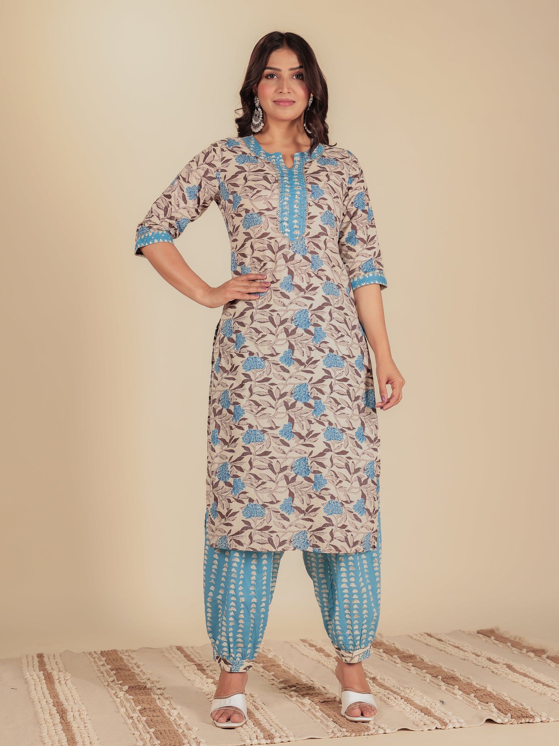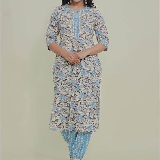 This Cream Straight kurta in soft Soft Cotton is a timeless pick for festive and casual wear. Designed with a Round neckline and 3/4 Sleeve sleeves, its graceful Calf Length cut flatters all body types. The delicate Floral detailing adds a touch of sophistication. Pair it with statement earrings and juttis for a polished look. Maintain its pristine look by following proper care instructions.