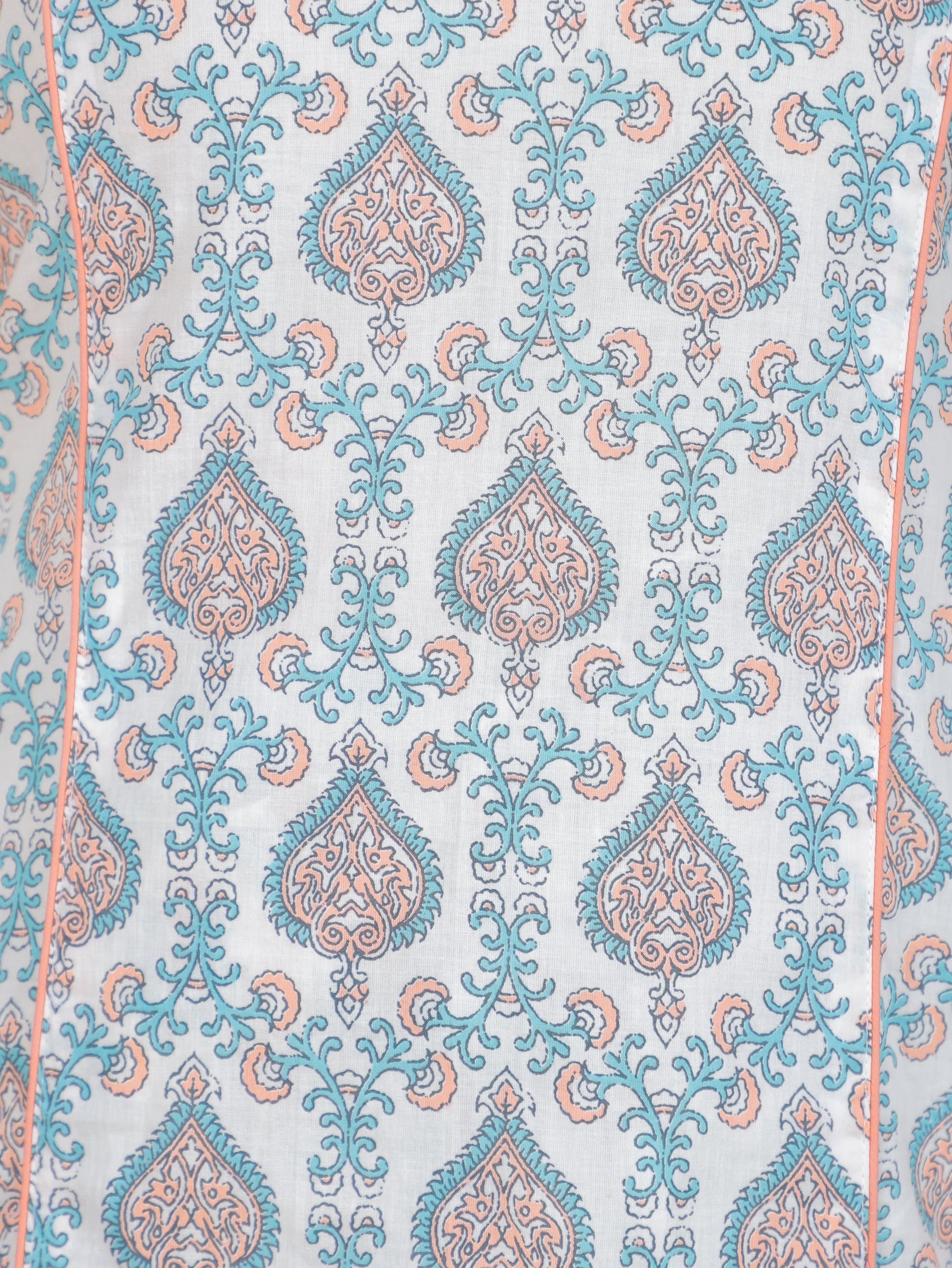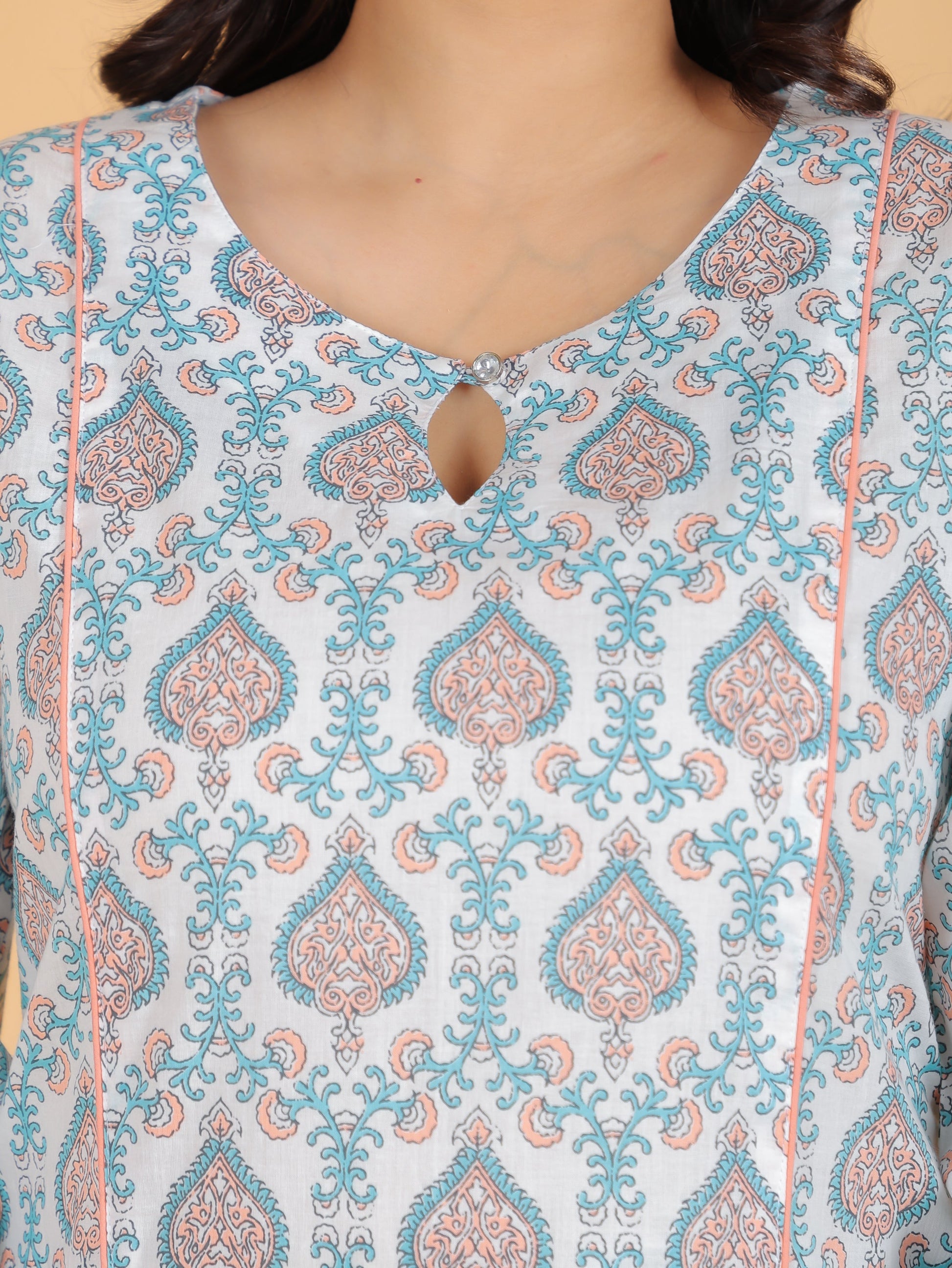 Crafted from breathable Soft Cotton, this Panelled kurta in White blends traditional design with everyday comfort. The Floral finish adds artisanal charm, while the Calf Length silhouette ensures effortless elegance. Style with palazzos or leggings for versatile looks, from workdays to weekend outings. Designed for easy care, this kurta stays beautiful with simple care instructions.