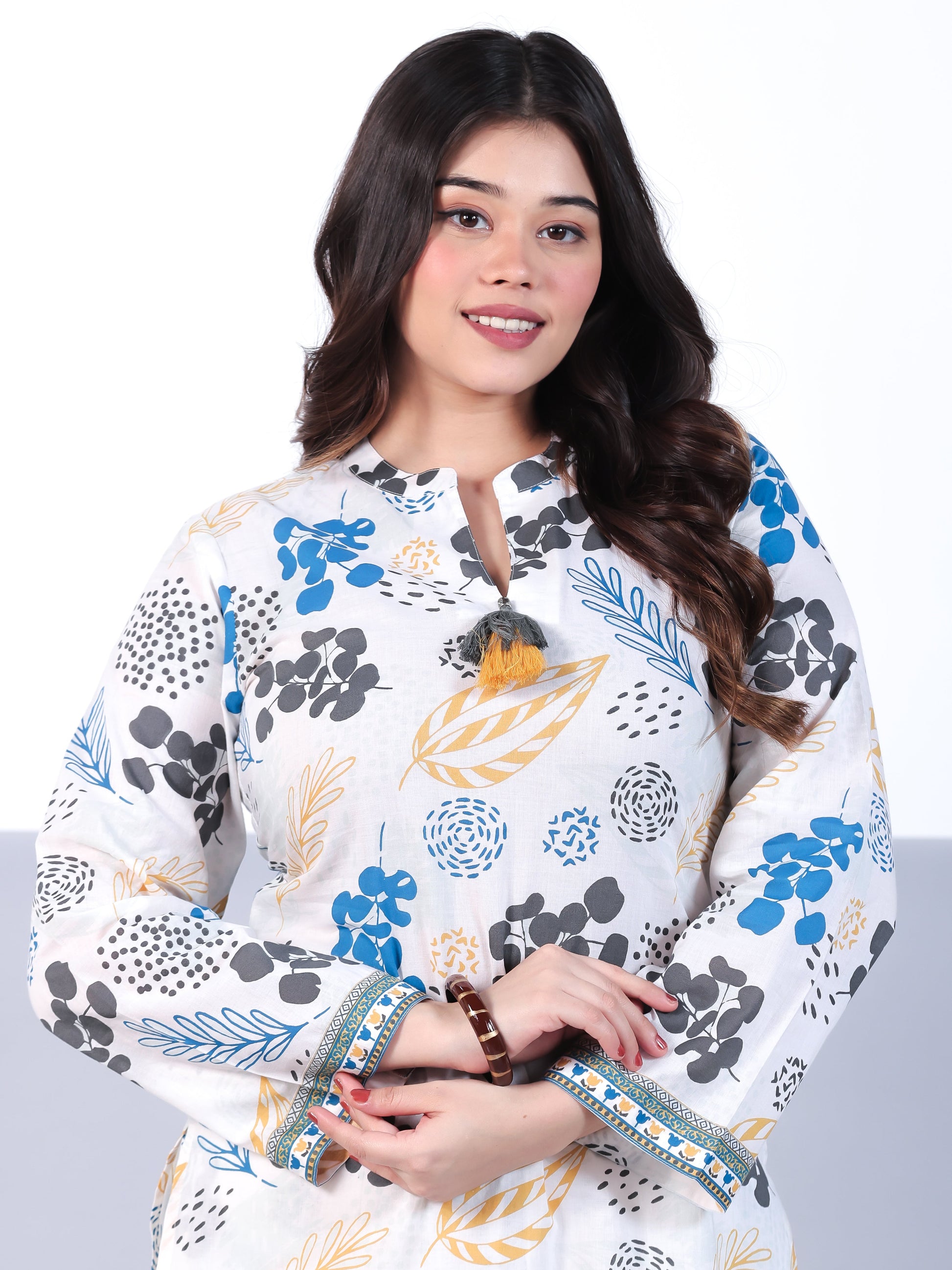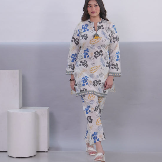 Soft Cotton Floral Straight White Kurta