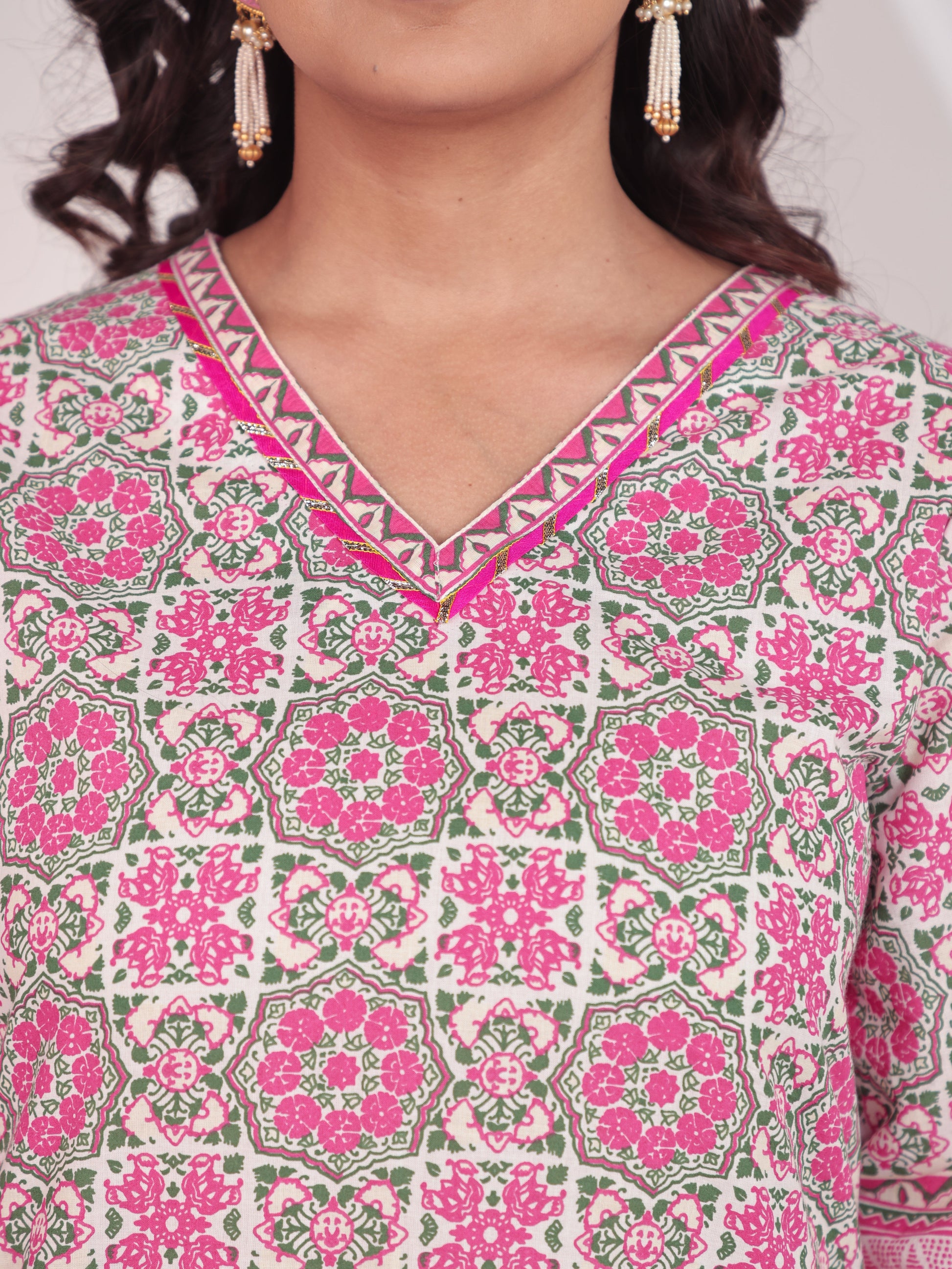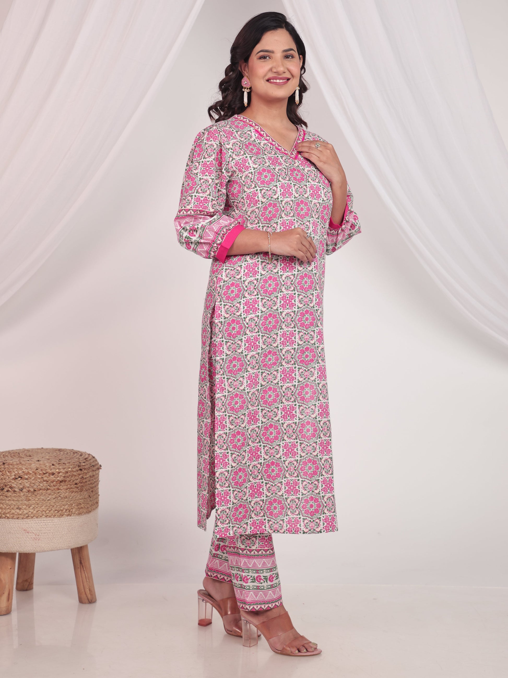 This White Straight kurta in soft Soft Cotton is a timeless pick for festive and casual wear. Designed with a V neckline and 3/4 Sleeve sleeves, its graceful Calf Length cut flatters all body types. The delicate Geometric detailing adds a touch of sophistication. Pair it with statement earrings and juttis for a polished look. Maintain its pristine look by following proper care instructions.