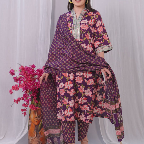 Embroidered Soft Cotton Floral Straight Wine Kurta