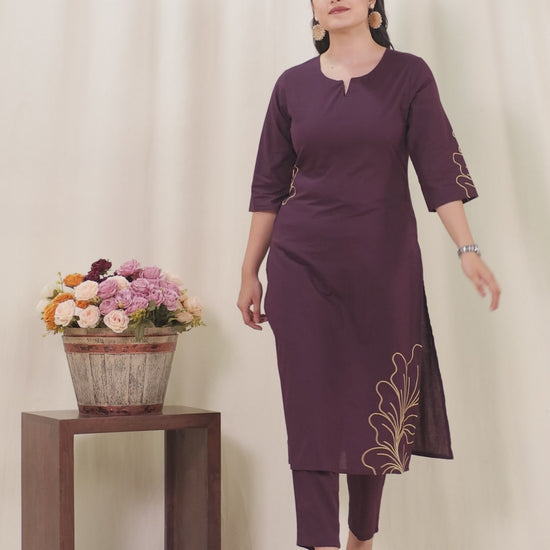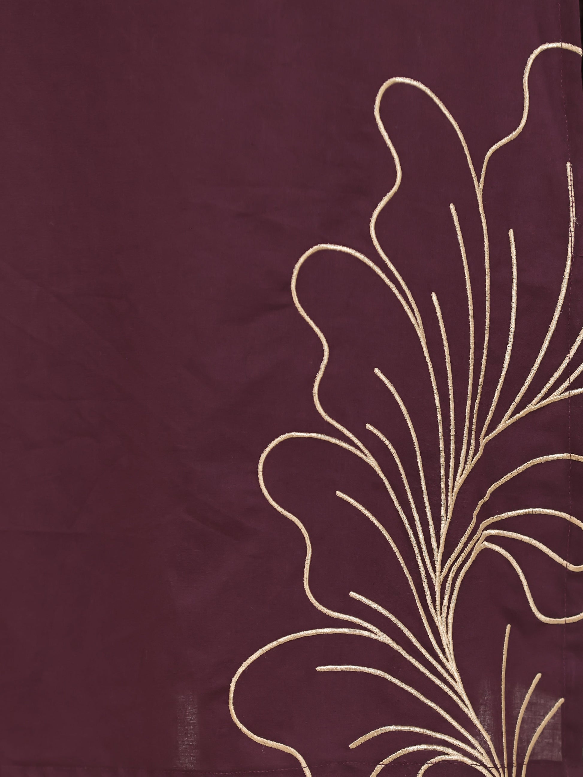 Embroidered Soft Cotton Solid Straight Wine Kurta