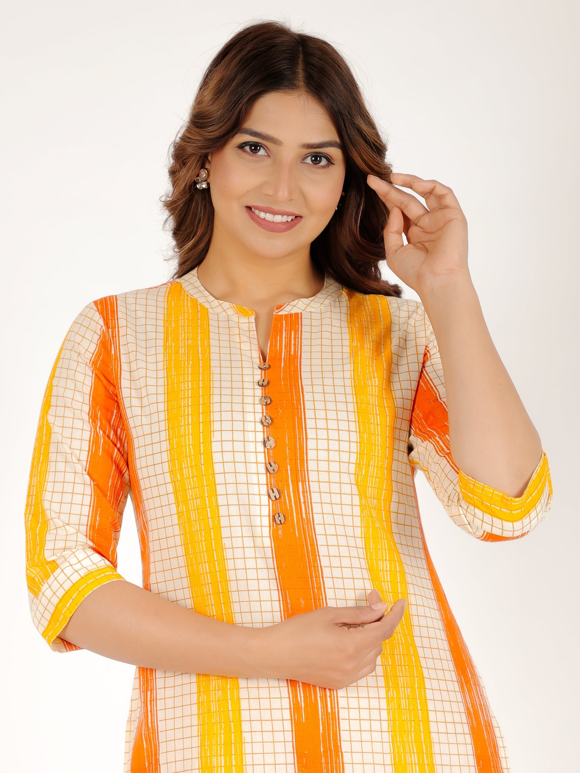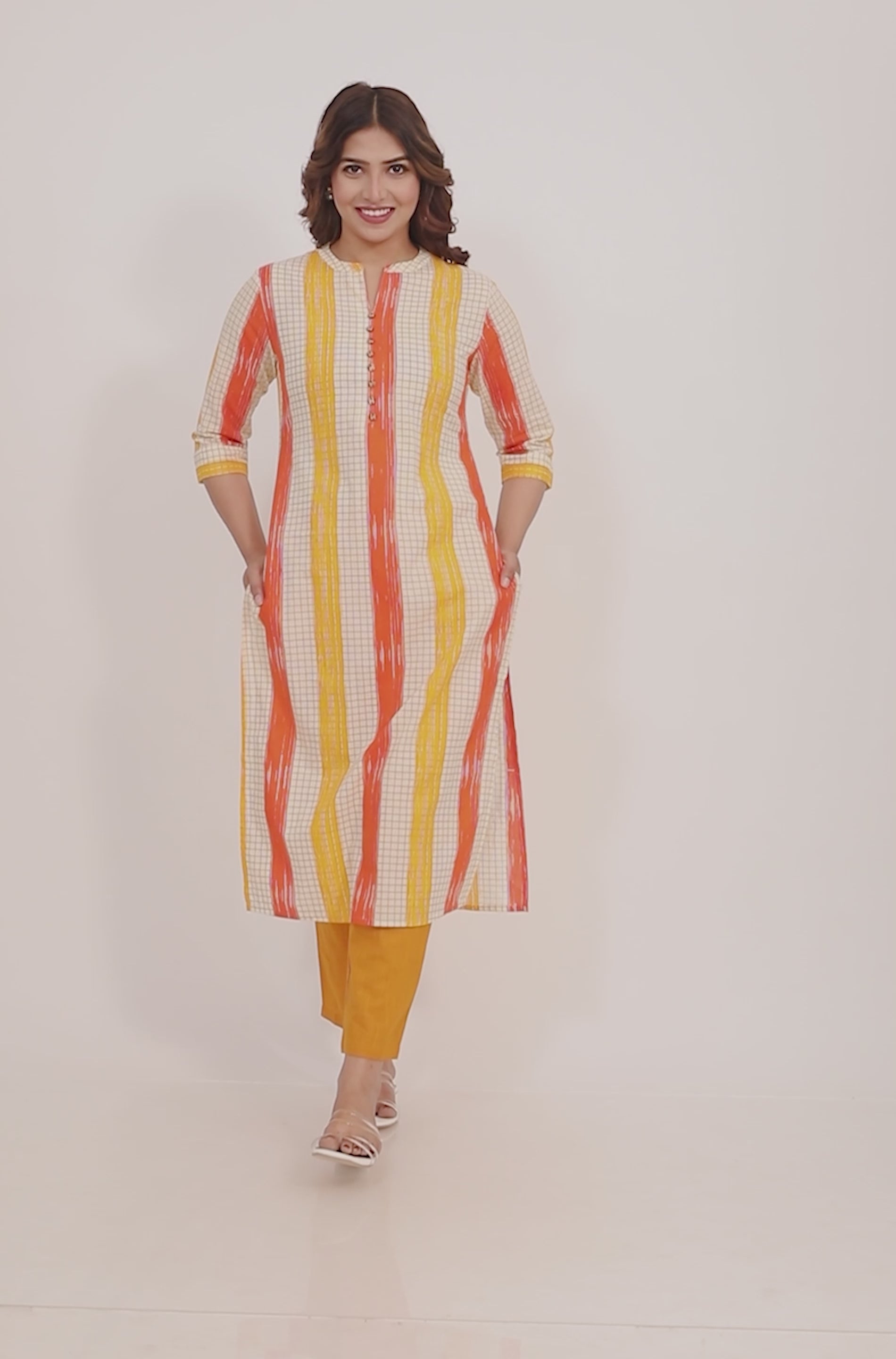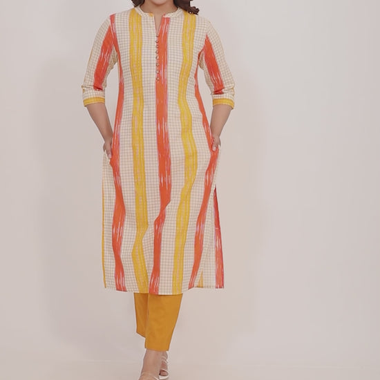Crafted from breathable Soft Cotton, this Straight kurta in Yellow blends traditional design with everyday comfort. The Checkered finish adds artisanal charm, while the Calf Length silhouette ensures effortless elegance. Style with palazzos or leggings for versatile looks, from workdays to weekend outings. Designed for easy care, this kurta stays beautiful with simple care instructions.