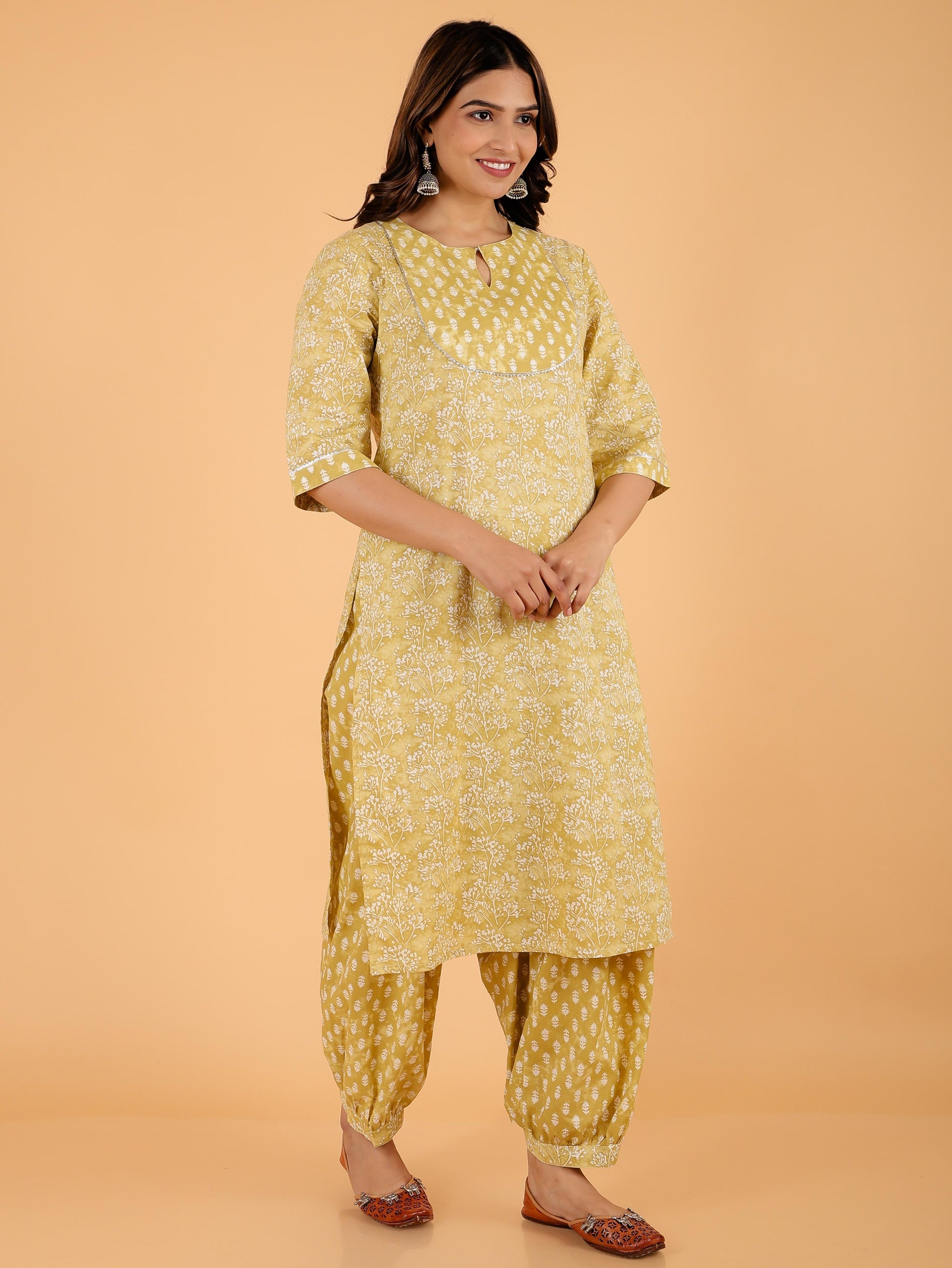 This Yellow Straight kurta in soft Soft Cotton is a timeless pick for festive and casual wear. Designed with a Keyhole neckline and 3/4 Sleeve sleeves, its graceful Calf Length cut flatters all body types. The delicate Floral detailing adds a touch of sophistication. Pair it with statement earrings and juttis for a polished look. Maintain its pristine look by following proper care instructions.