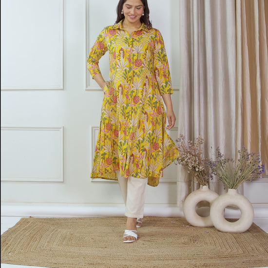 Soft Cotton Floral High Low Yellow Kurta