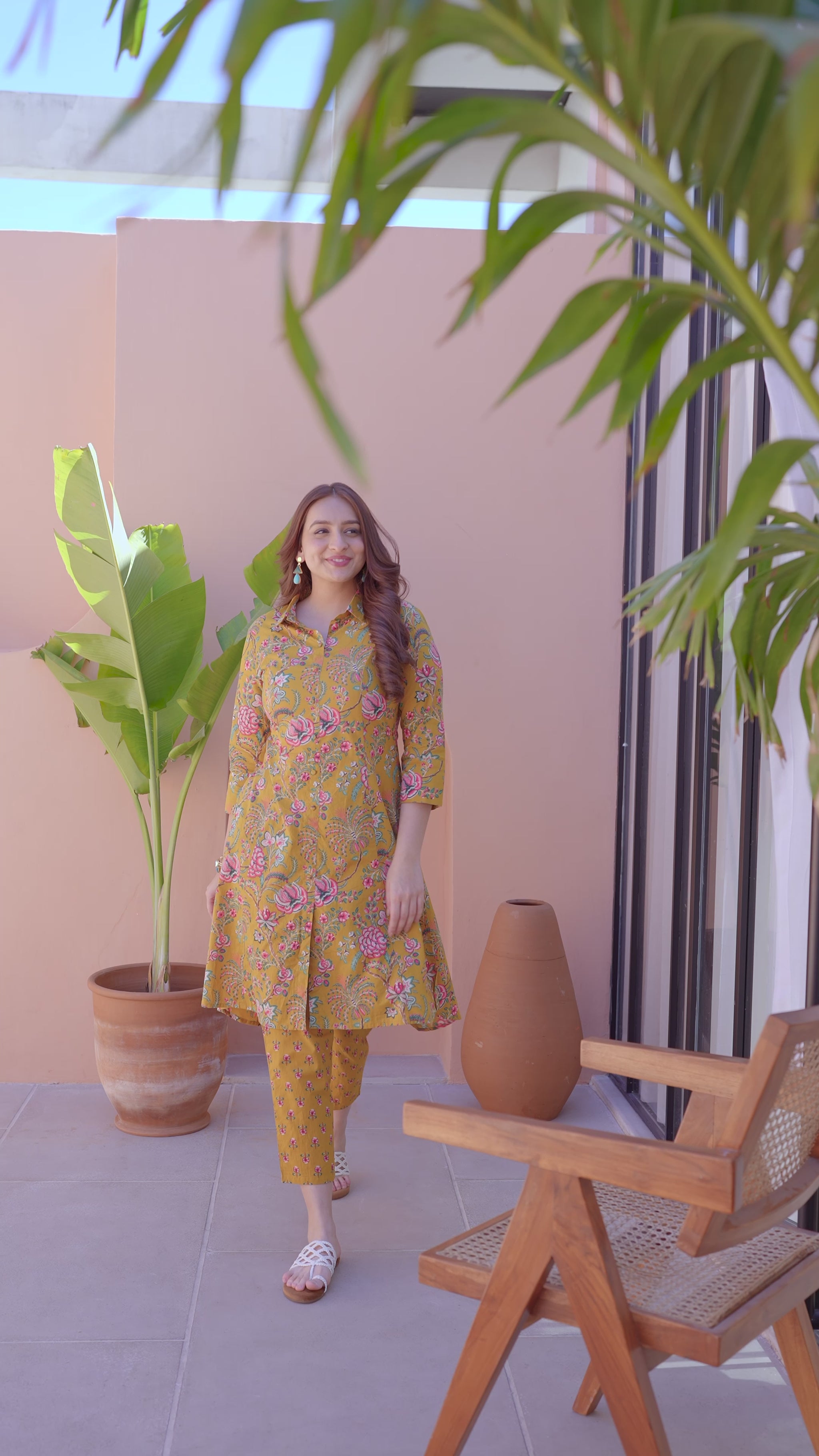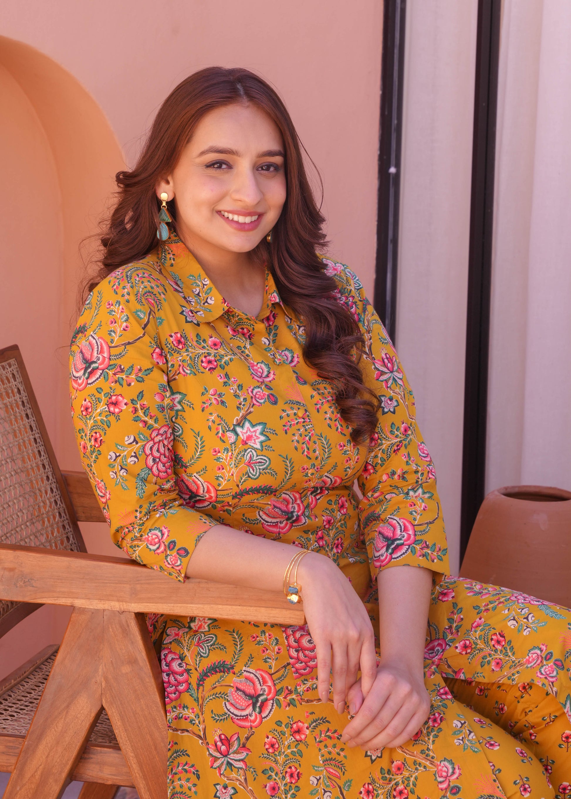 This Yellow Soft Cotton kurta with a High Low flare is designed for comfort and style. Featuring a Collared neckline, 3/4 Sleeve sleeves, and a graceful Calf Length hemline, it’s perfect for festive wear or semi-formal gatherings. The Foliage highlights add depth and texture, making it a standout piece. Accessorise with a contrasting dupatta and keep it pristine by following proper care instructions.