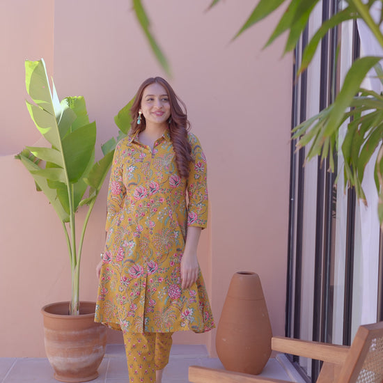 Soft Cotton Foliage High Low Yellow Kurta