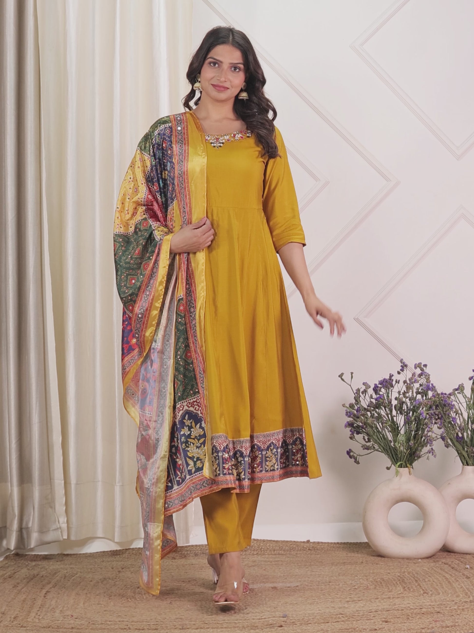 This Yellow Muslin kurta with a Flared flare is designed for comfort and style. Featuring a Keyhole neckline, 3/4 Sleeve sleeves, and a graceful Calf Length hemline, it’s perfect for festive wear or semi-formal gatherings. The Solid highlights add depth and texture, making it a standout piece. Accessorise with a contrasting dupatta and keep it pristine by following proper care instructions.