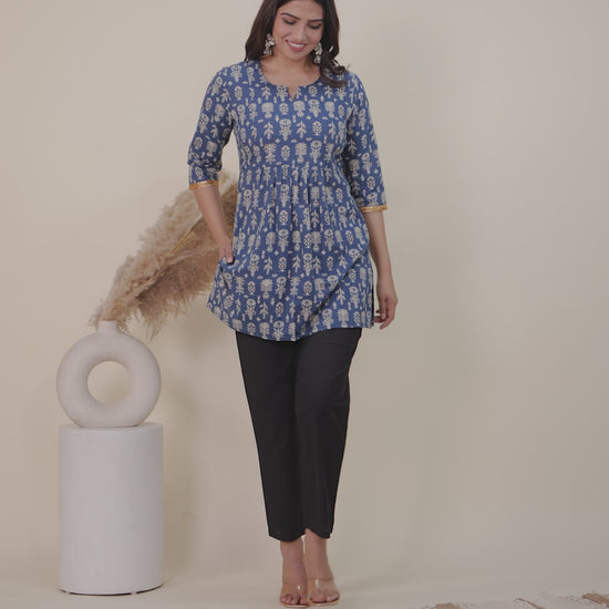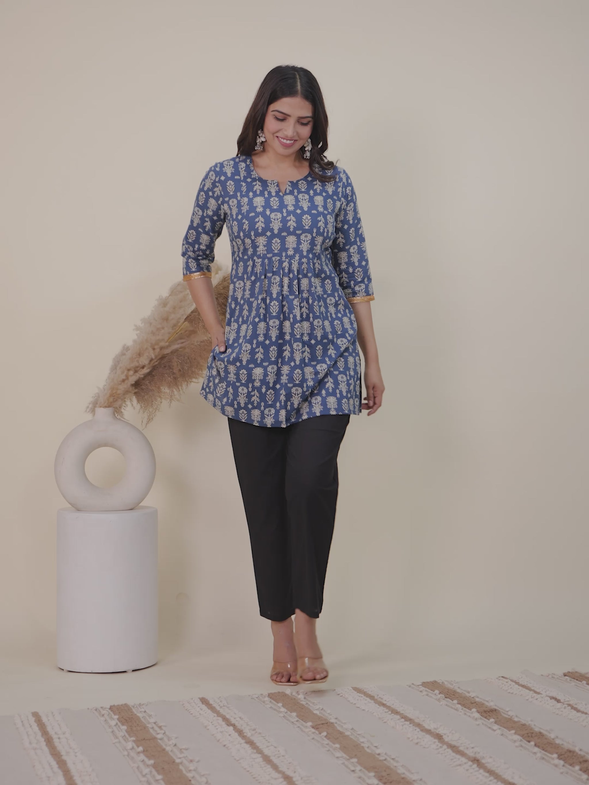 This Blue Straight kurta in soft Soft Cotton is a timeless pick for festive and casual wear. Designed with a Round neckline and 3/4 Sleeve sleeves, its graceful Short cut flatters all body types. The delicate Floral detailing adds a touch of sophistication. Pair it with statement earrings and juttis for a polished look. Maintain its pristine look by following proper care instructions.