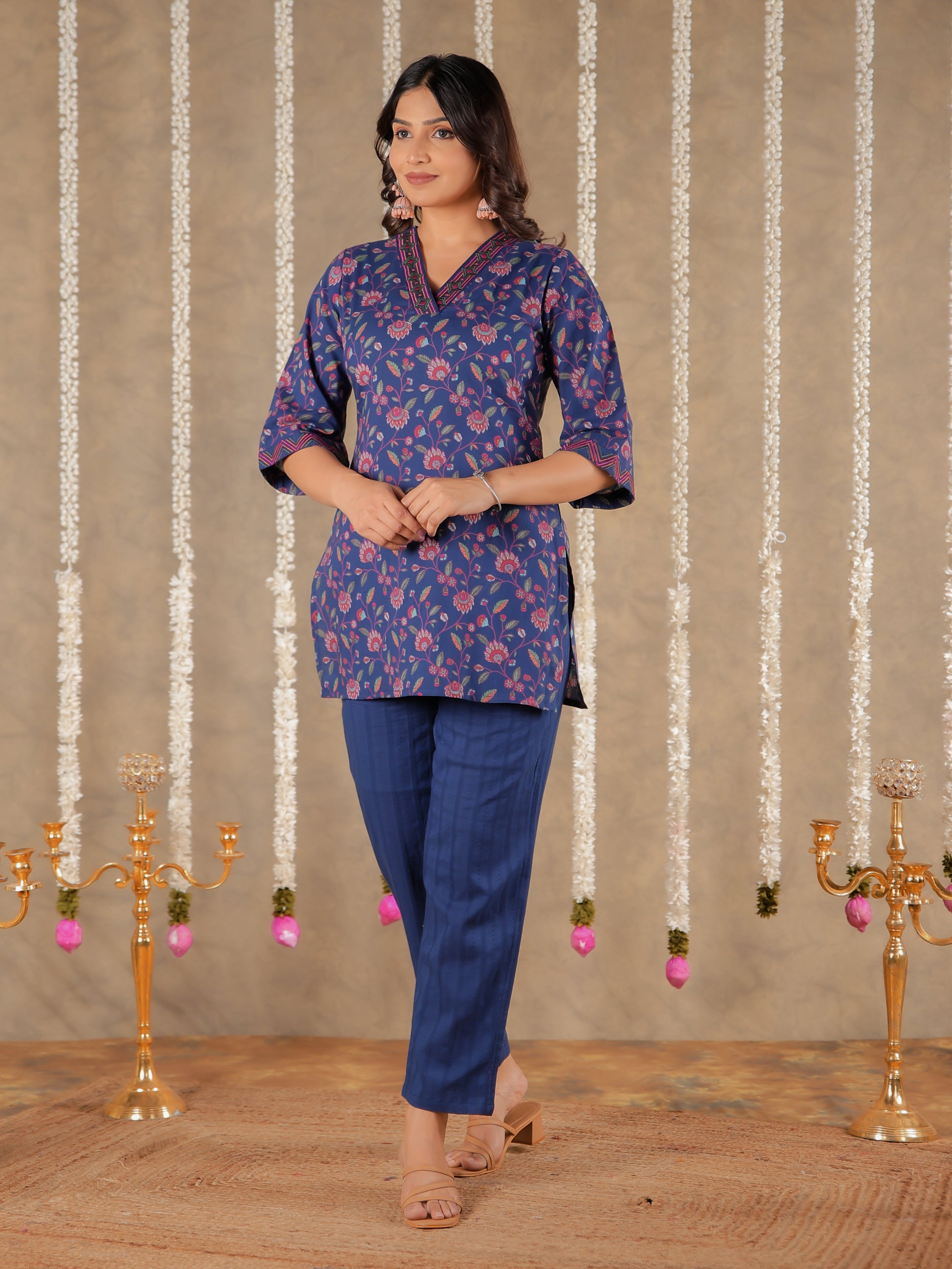Soft Cotton Floral Straight Blue Kurti