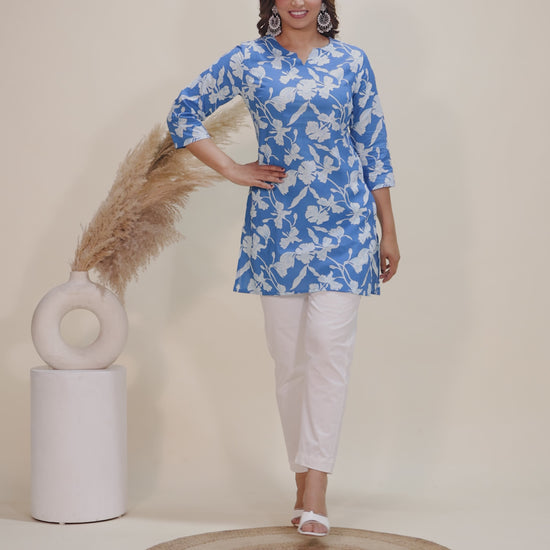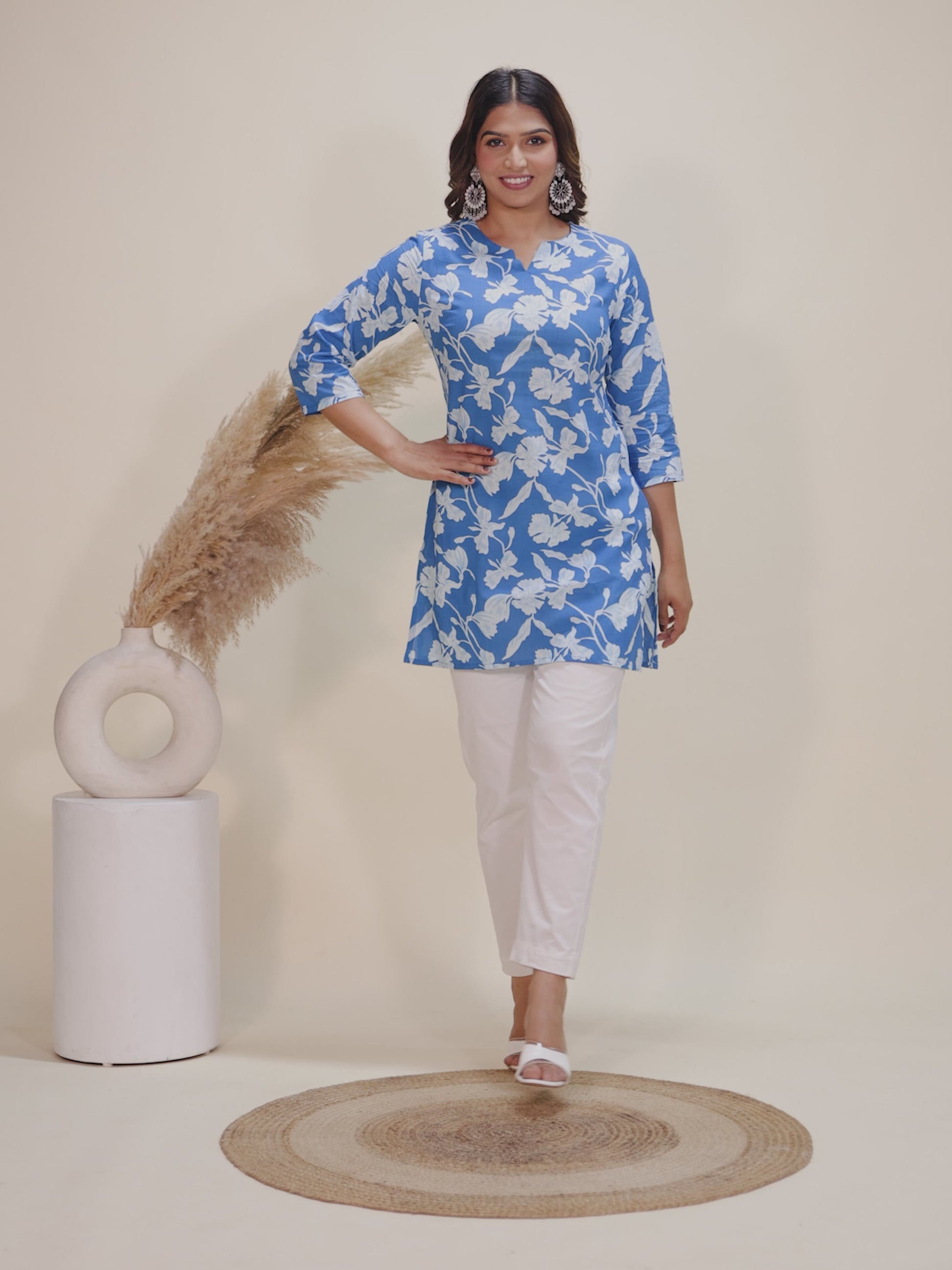 This Blue Soft Cotton kurta with a Straight flare is designed for comfort and style. Featuring a Round neckline, 3/4 Sleeve sleeves, and a graceful Short hemline, it’s perfect for festive wear or semi-formal gatherings. The Floral highlights add depth and texture, making it a standout piece. Accessorise with a contrasting dupatta and keep it pristine by following proper care instructions.