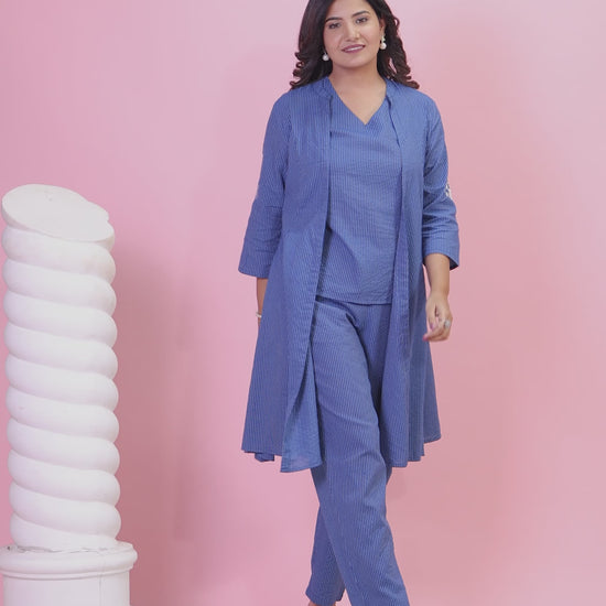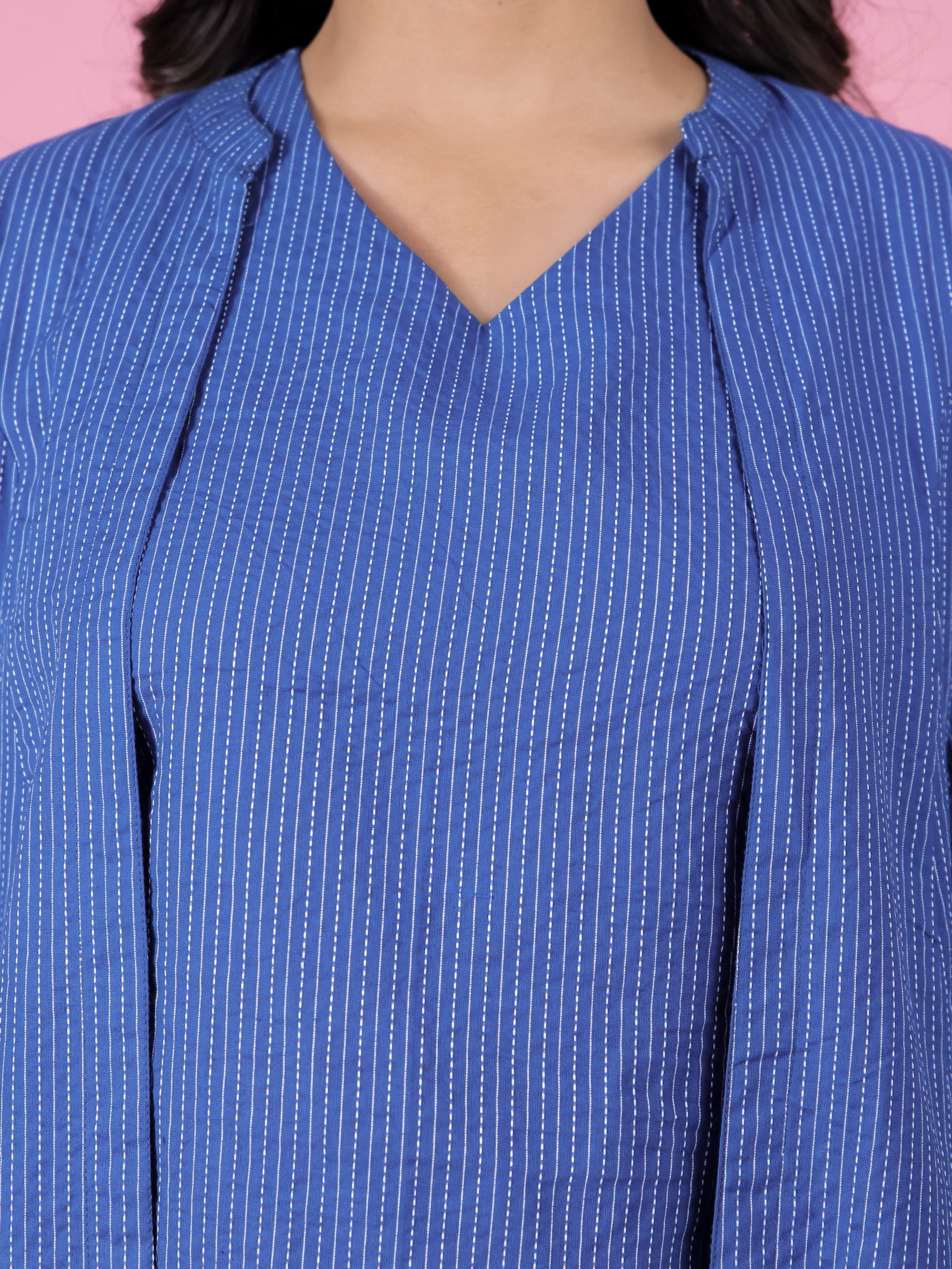 Kantha Cotton Solid Straight Blue Kurti