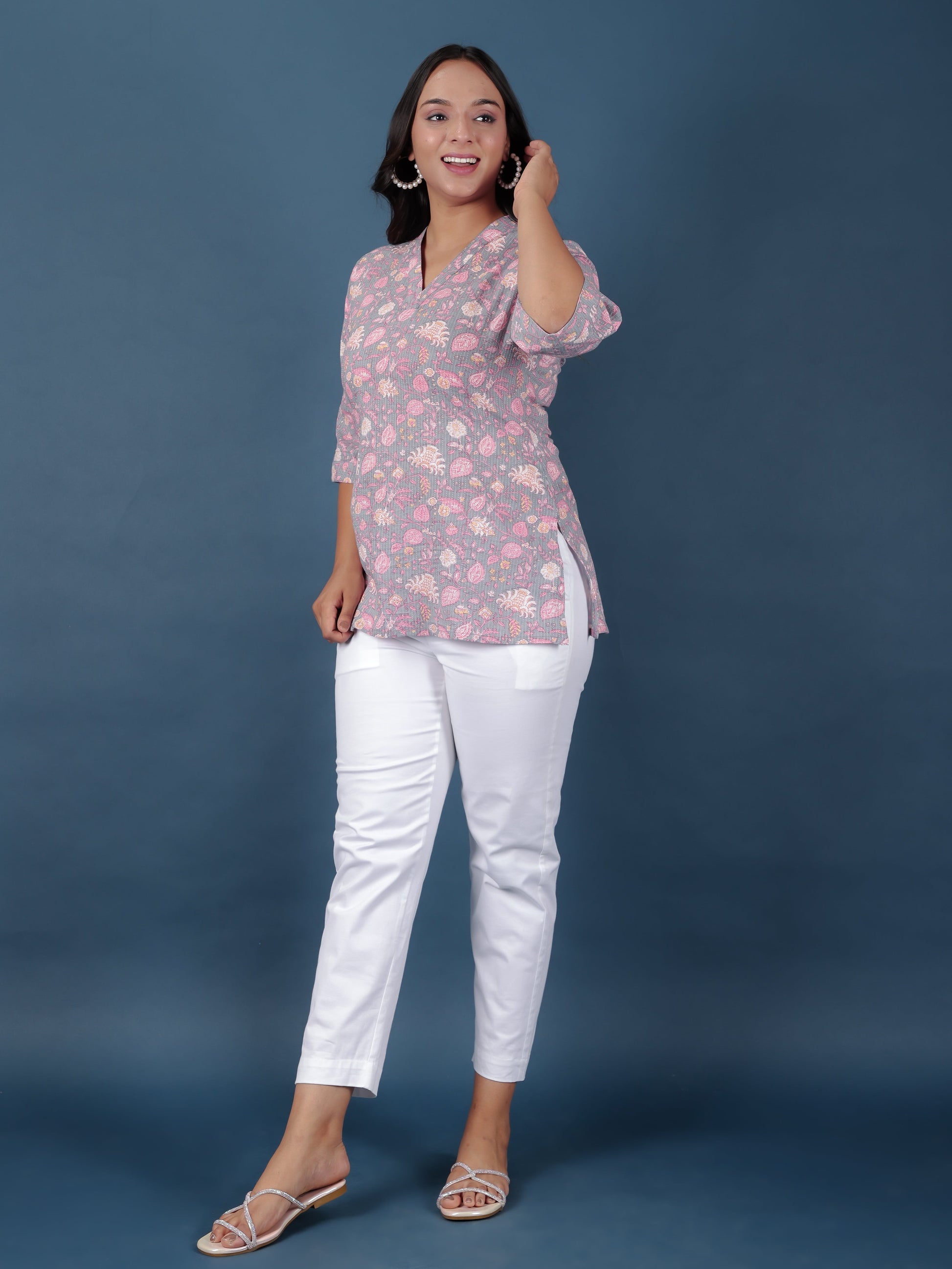 Elevate your ethnic wardrobe with this Kantha Cotton kurta in a stunning Grey hue. Featuring an elegant Straight fit and striking Floral accents, it’s perfect for festive celebrations or family gatherings. The V neckline and 3/4 Sleeve provide all-day comfort. Team with gold-toned accessories for an effortlessly chic vibe. Maintain its charm by following proper care instructions.