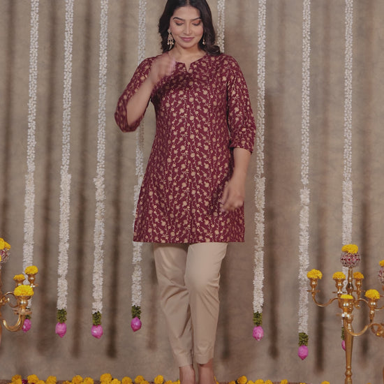 Soft Cotton Floral Straight Maroon Kurti