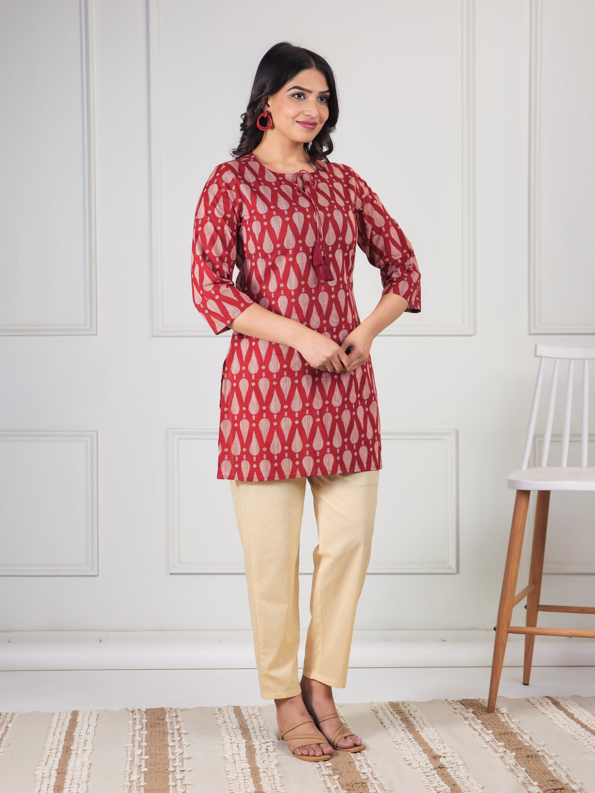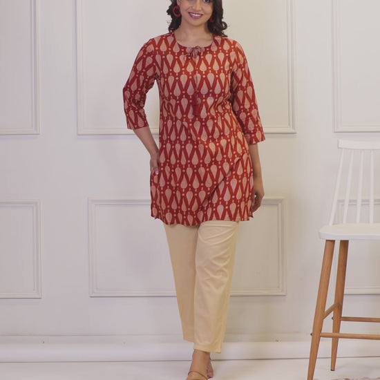 Soft Cotton Geometric Straight Maroon Kurti