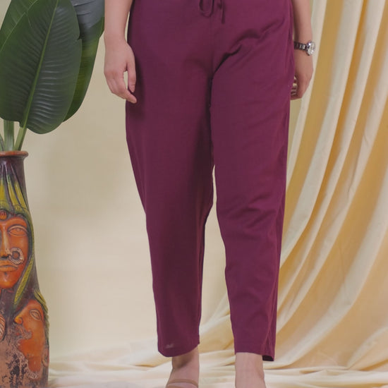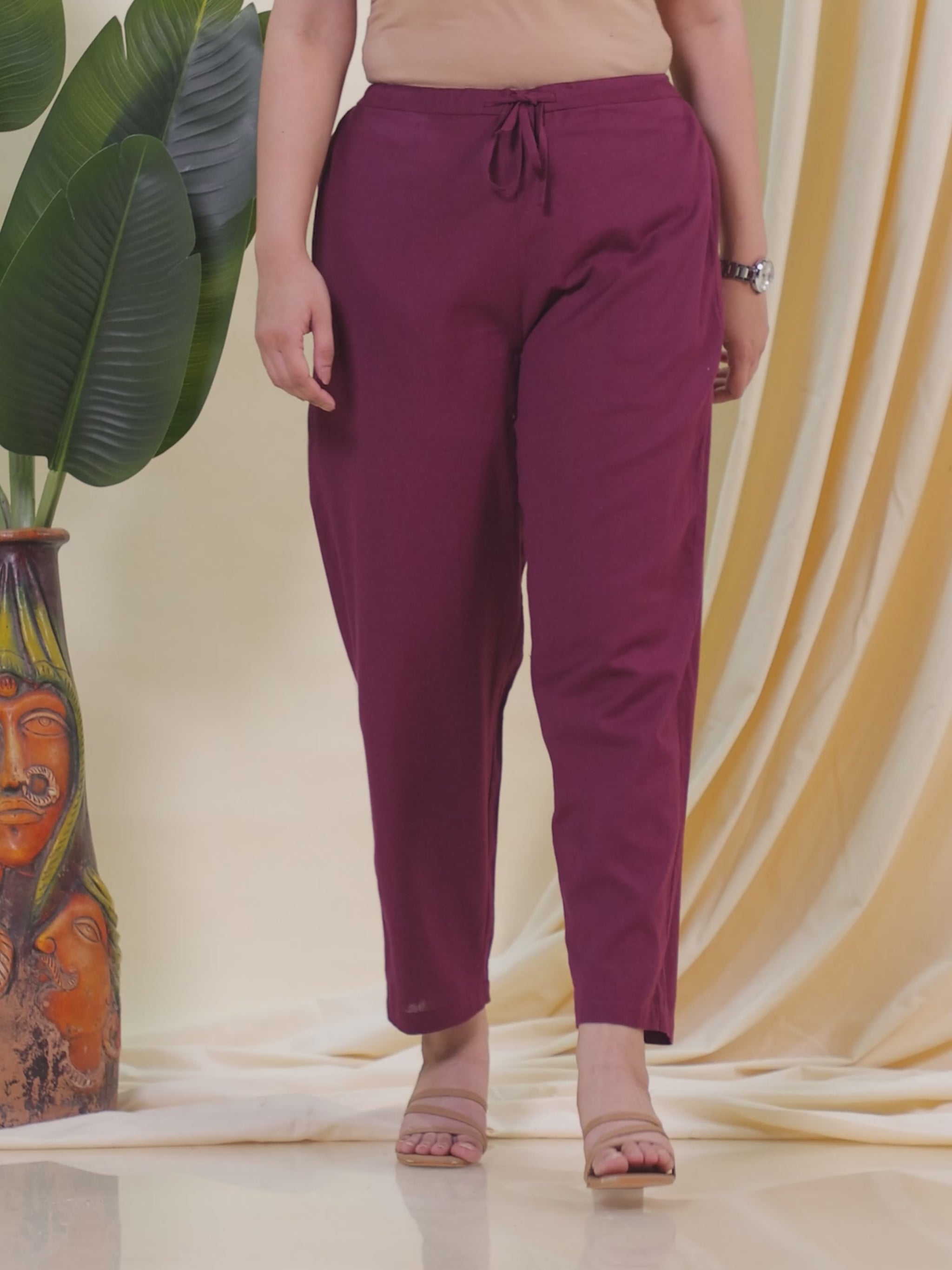 Crafted from Linen Cotton, these Maroon bottoms are designed for all-day comfort. The chic Solid work adds flair, and pockets provide convenience for carrying essentials. Great for casual days, shopping trips, or work, these bottoms pair effortlessly with your favourite tops. Their durable design and easy maintenance make them a practical staple.