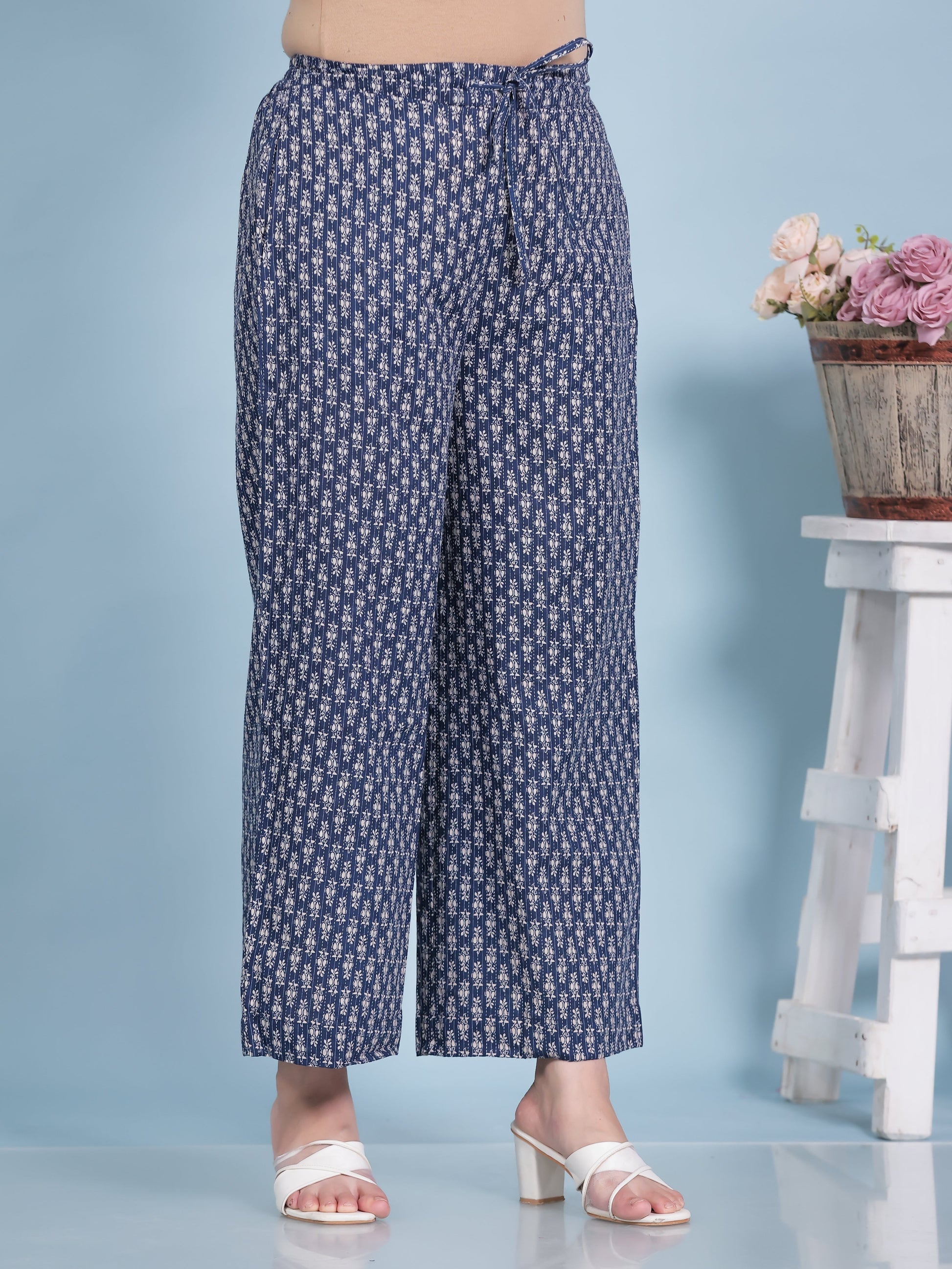 Kantha Cotton Butta Blue Palazzo
