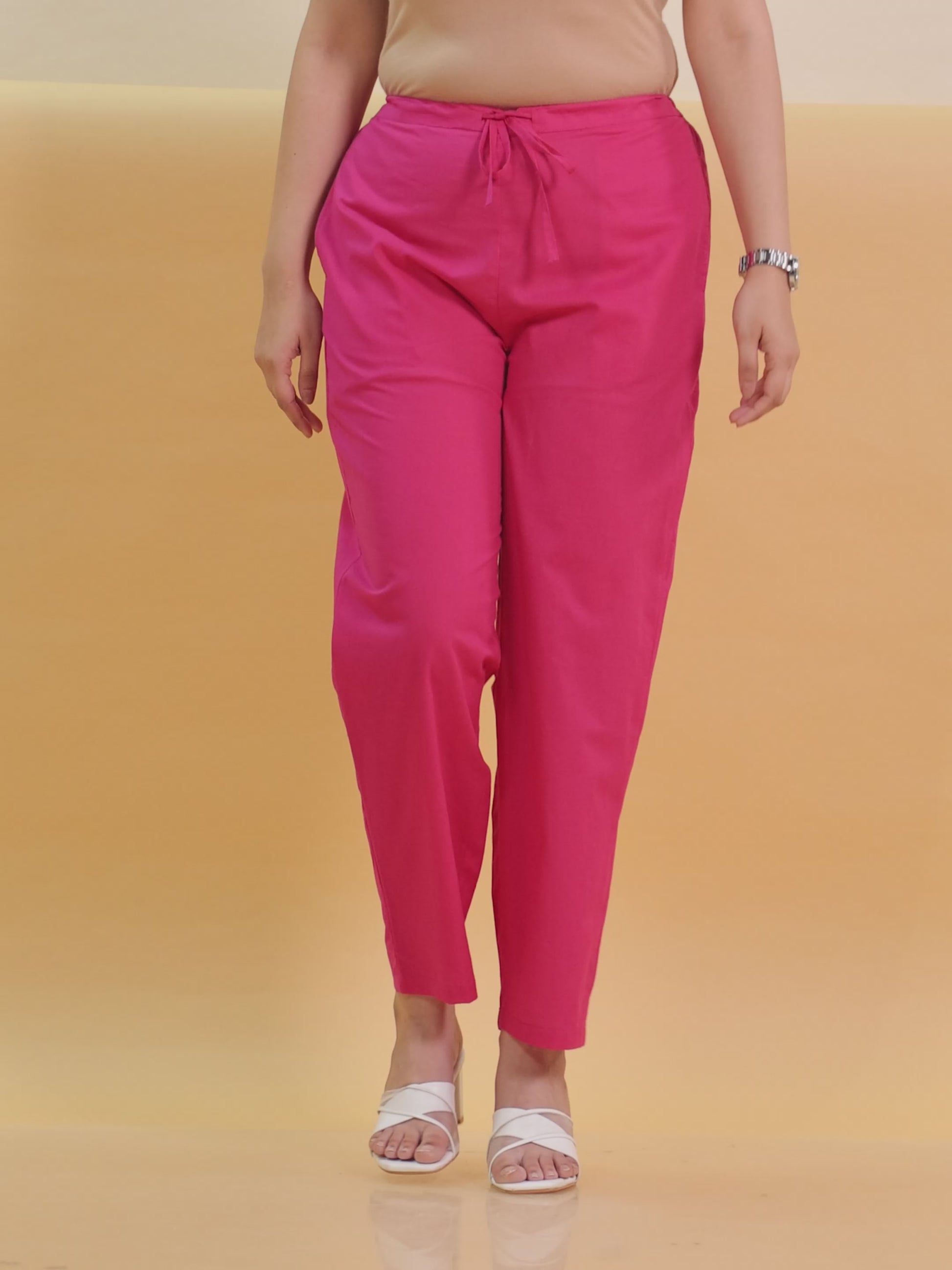 Soft Cotton Solid Pink Palazzo