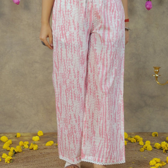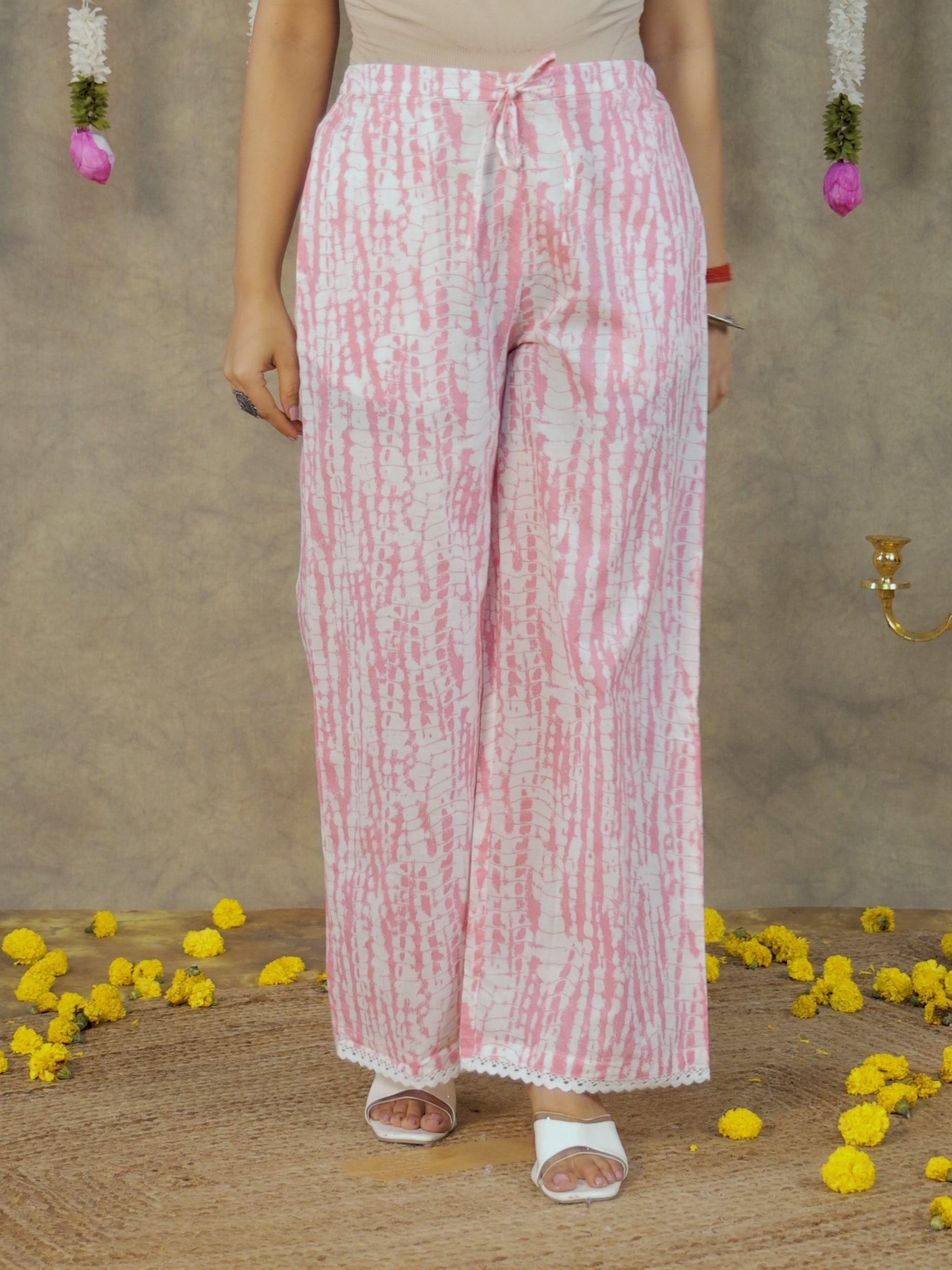 These Soft Cotton palazzos in Pink combine comfort and sophistication. The Tie-Dye detailing adds personality, while pockets make them practical for busy days. Perfect for office wear, shopping trips, or casual gatherings, their flowy fit complements all body types. Style with sandals and a crisp kurta for a chic finish. Low-maintenance care keeps them versatile.