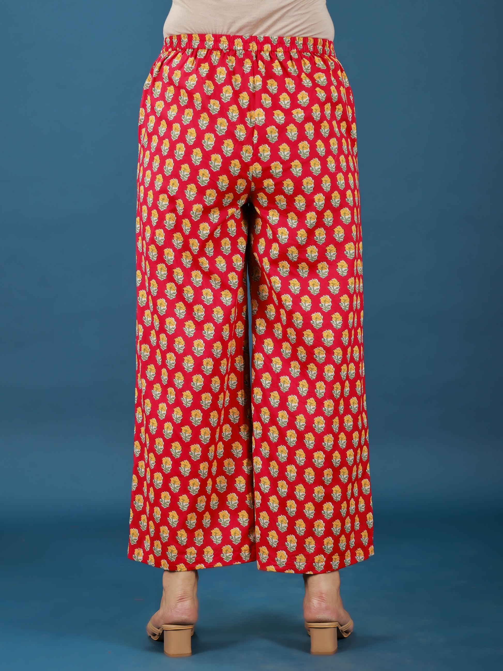 Upgrade your ethnic and western wear collection with these Red palazzos. Crafted from breathable Soft Cotton, they feature a flattering wide-leg design, subtle Floral highlights, and pockets for functionality. Ideal for pairing with kurtas, tunics, or shirts, they’re a must-have for effortless styling. Keep them fresh with simple care, making them your everyday go-to choice.