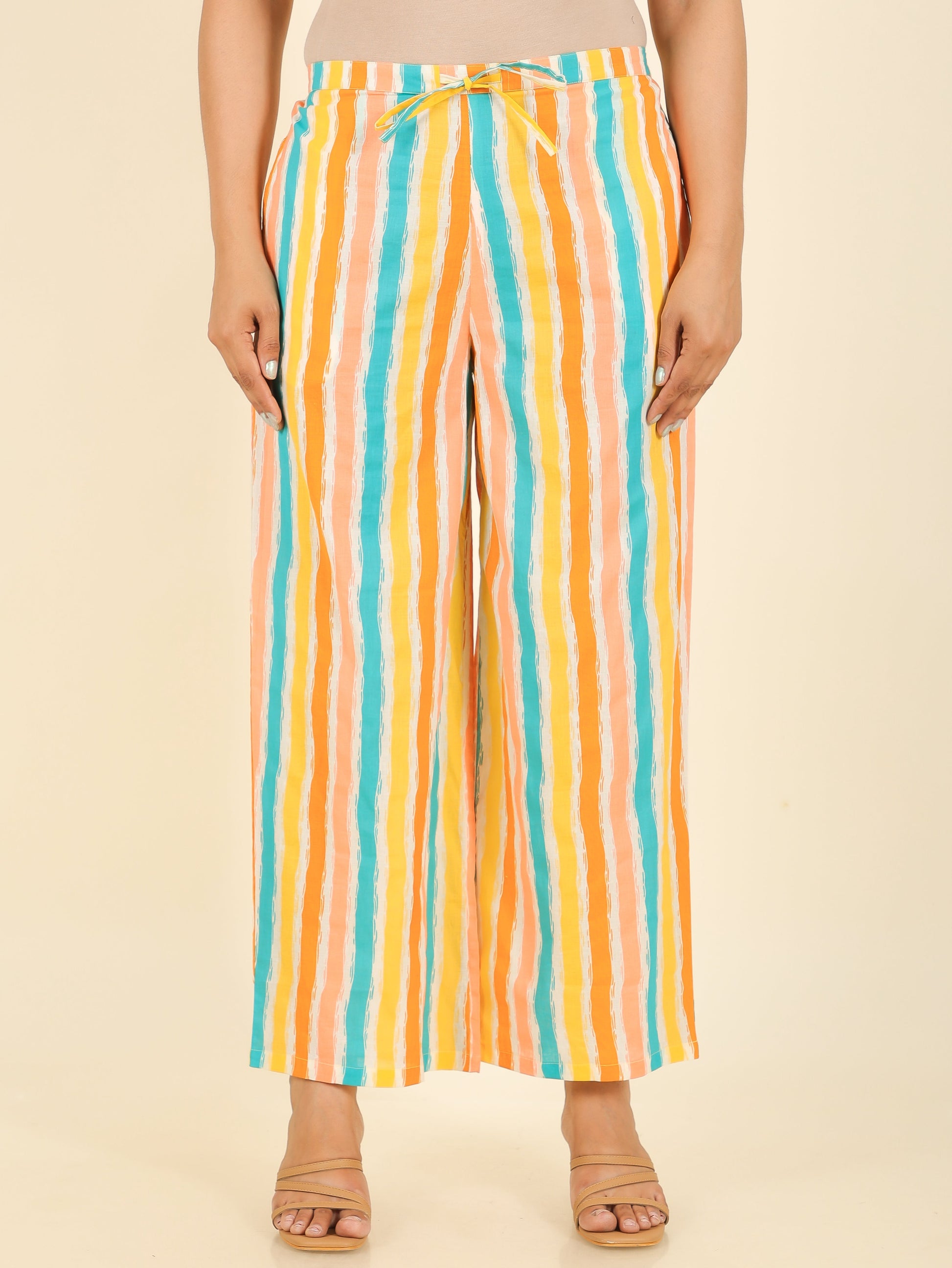 These Soft Cotton palazzos in White combine comfort and sophistication. The Striped detailing adds personality, while pockets make them practical for busy days. Perfect for office wear, shopping trips, or casual gatherings, their flowy fit complements all body types. Style with sandals and a crisp kurta for a chic finish. Low-maintenance care keeps them versatile.