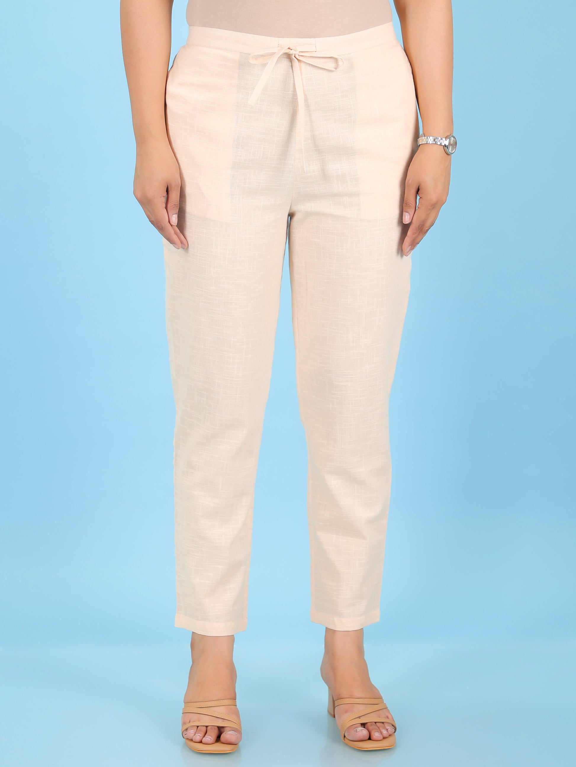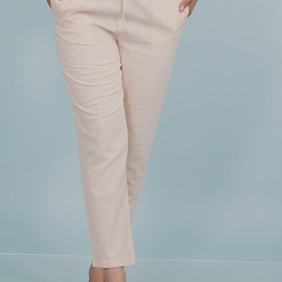 These Beige trouser crafted from breathable Linen Cotton combine comfort and style. The Solid pattern adds a modern twist, while pockets make them practical for daily wear. Ideal for casual outings or workdays, they pair effortlessly with kurtas, tops, or tunics. Keep them looking fresh with minimal care and enjoy their all-day ease.