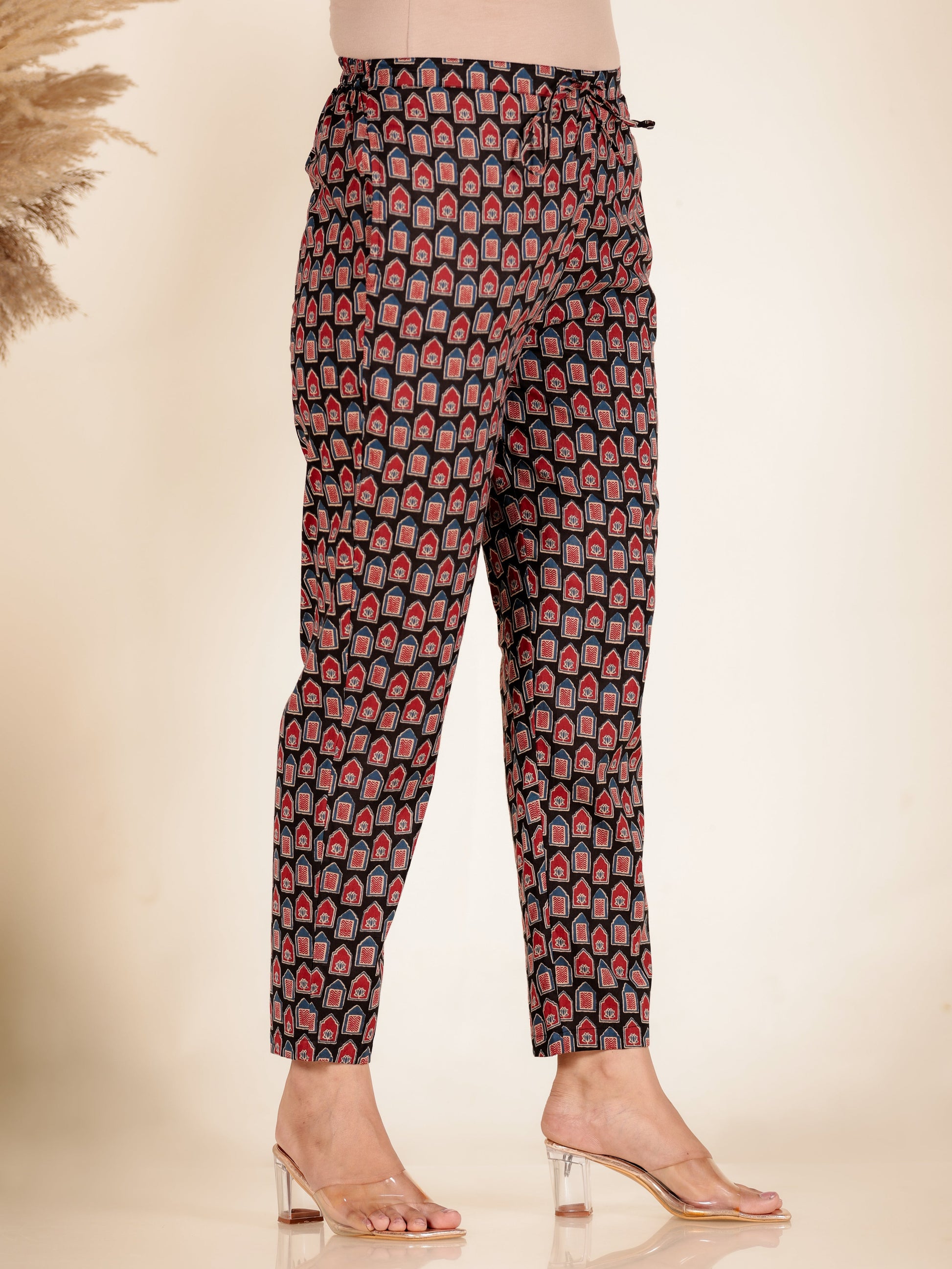 These Black trouser crafted from breathable Soft Cotton combine comfort and style. The Abstract pattern adds a modern twist, while pockets make them practical for daily wear. Ideal for casual outings or workdays, they pair effortlessly with kurtas, tops, or tunics. Keep them looking fresh with minimal care and enjoy their all-day ease.