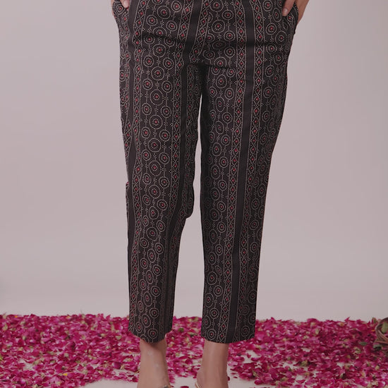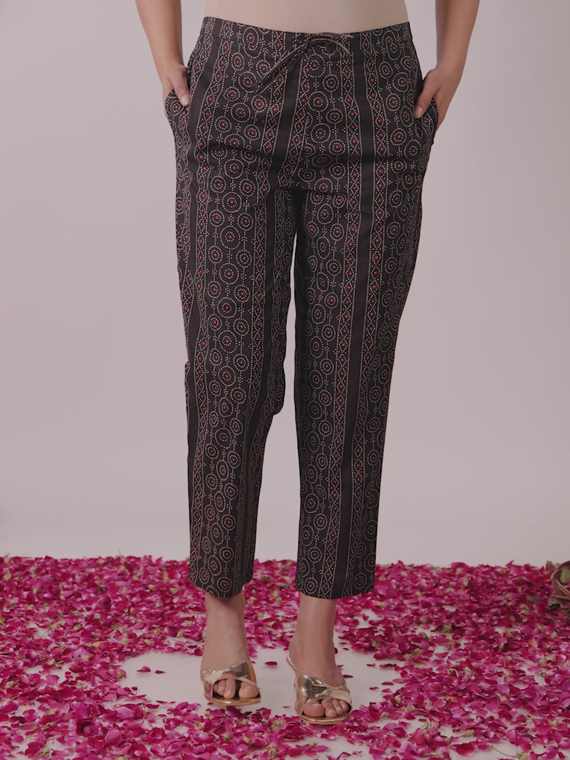 Upgrade your wardrobe with these Black bottoms made from lightweight Soft Cotton. The Geometric accents bring subtle charm, while pockets make them practical for all-day wear. Perfect for pairing with ethnic kurtas or western blouses, these bottoms are a go-to choice for comfort and style. Easy care ensures they stay fresh season after season.