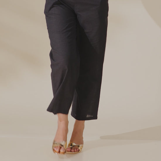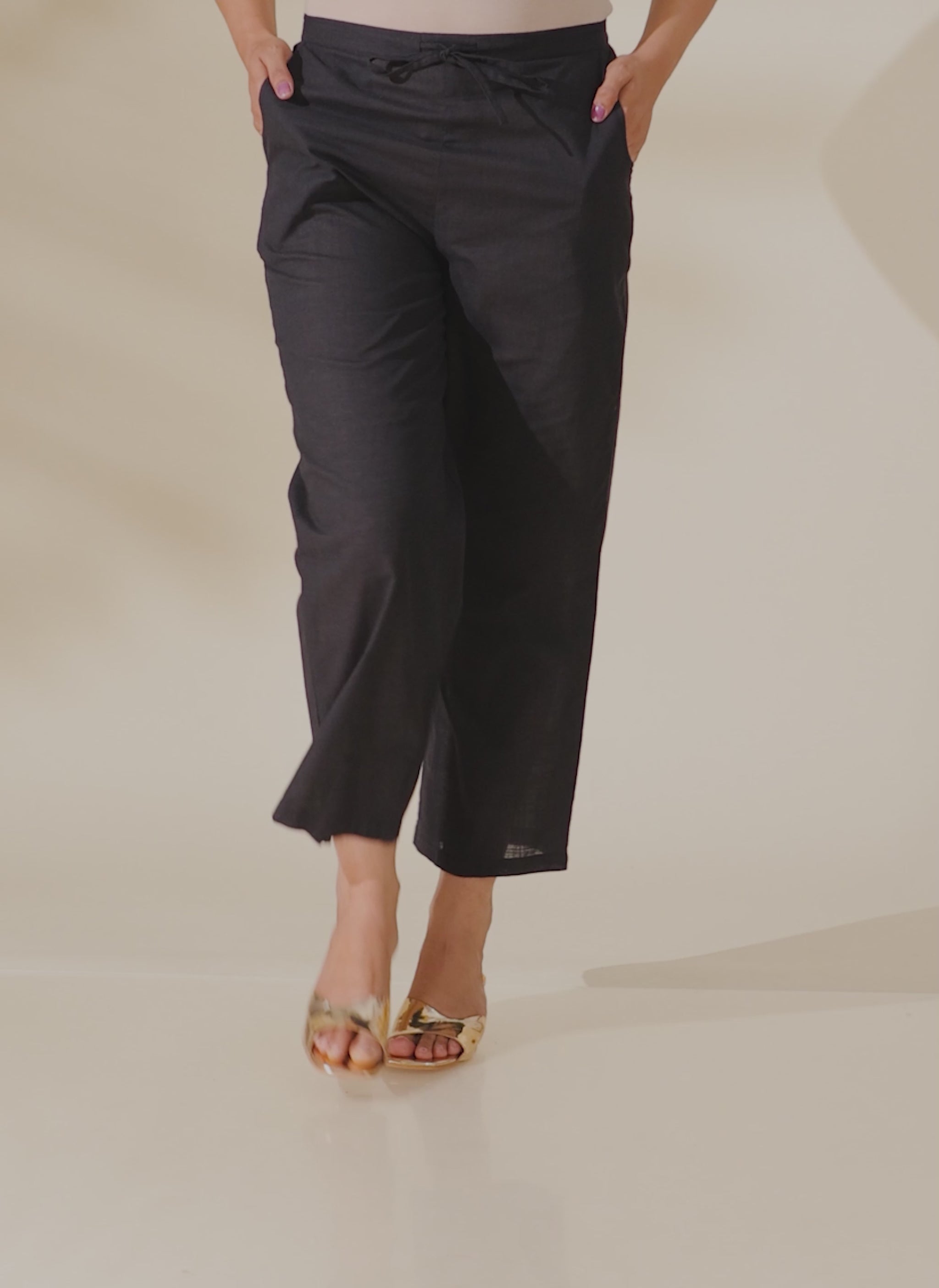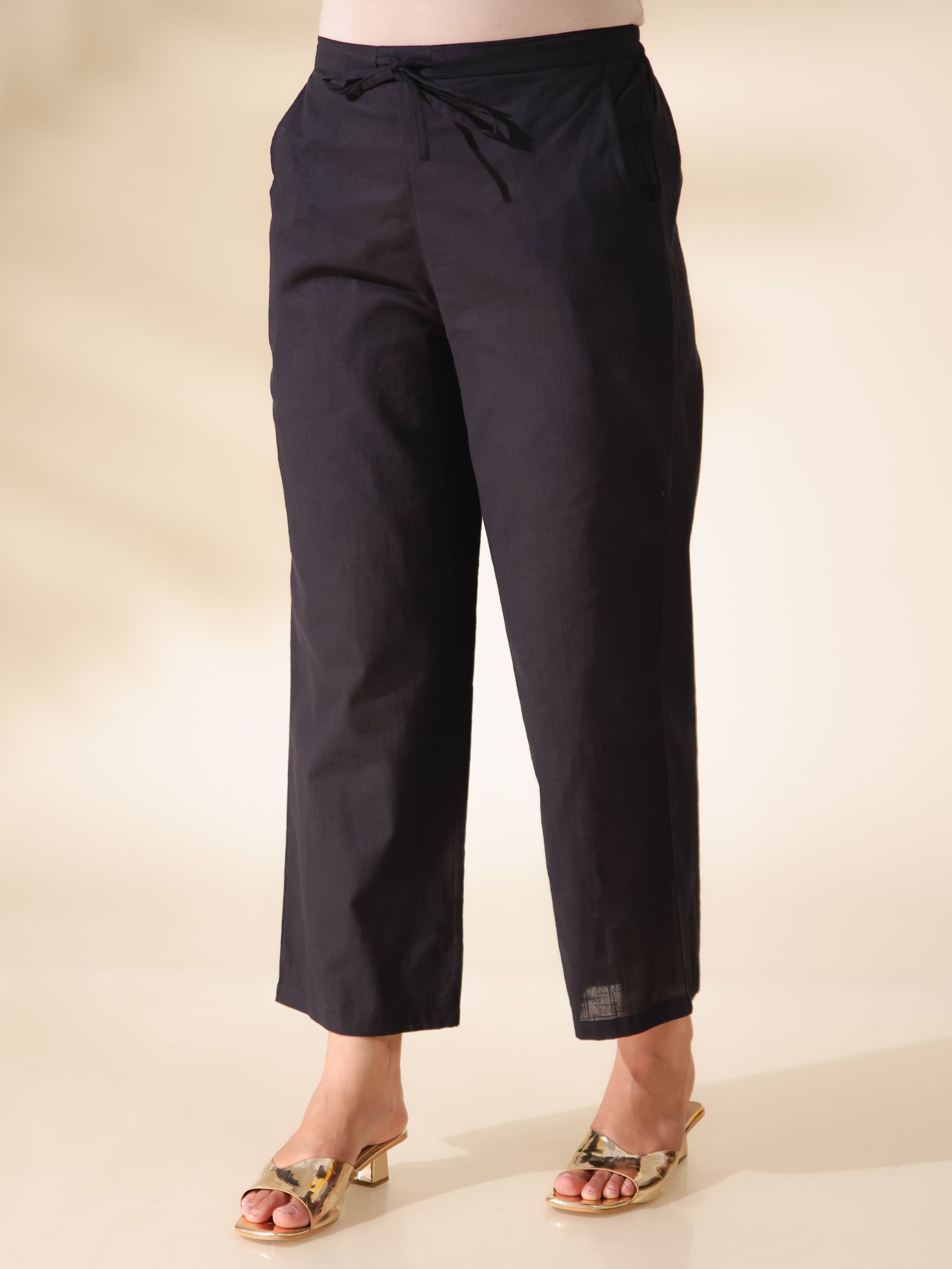 Upgrade your wardrobe with these Black bottoms made from lightweight Natural Cotton. The Solid accents bring subtle charm, while pockets make them practical for all-day wear. Perfect for pairing with ethnic kurtas or western blouses, these bottoms are a go-to choice for comfort and style. Easy care ensures they stay fresh season after season.