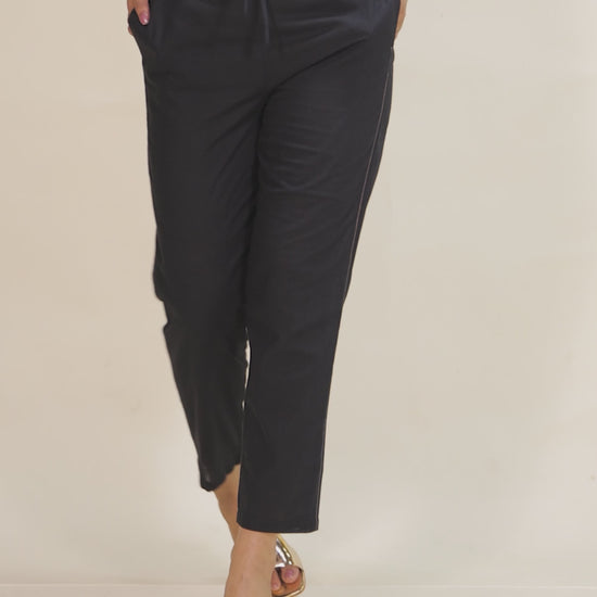 Crafted from Linen Cotton, these Black bottoms are designed for all-day comfort. The chic Solid work adds flair, and pockets provide convenience for carrying essentials. Great for casual days, shopping trips, or work, these bottoms pair effortlessly with your favourite tops. Their durable design and easy maintenance make them a practical staple.
