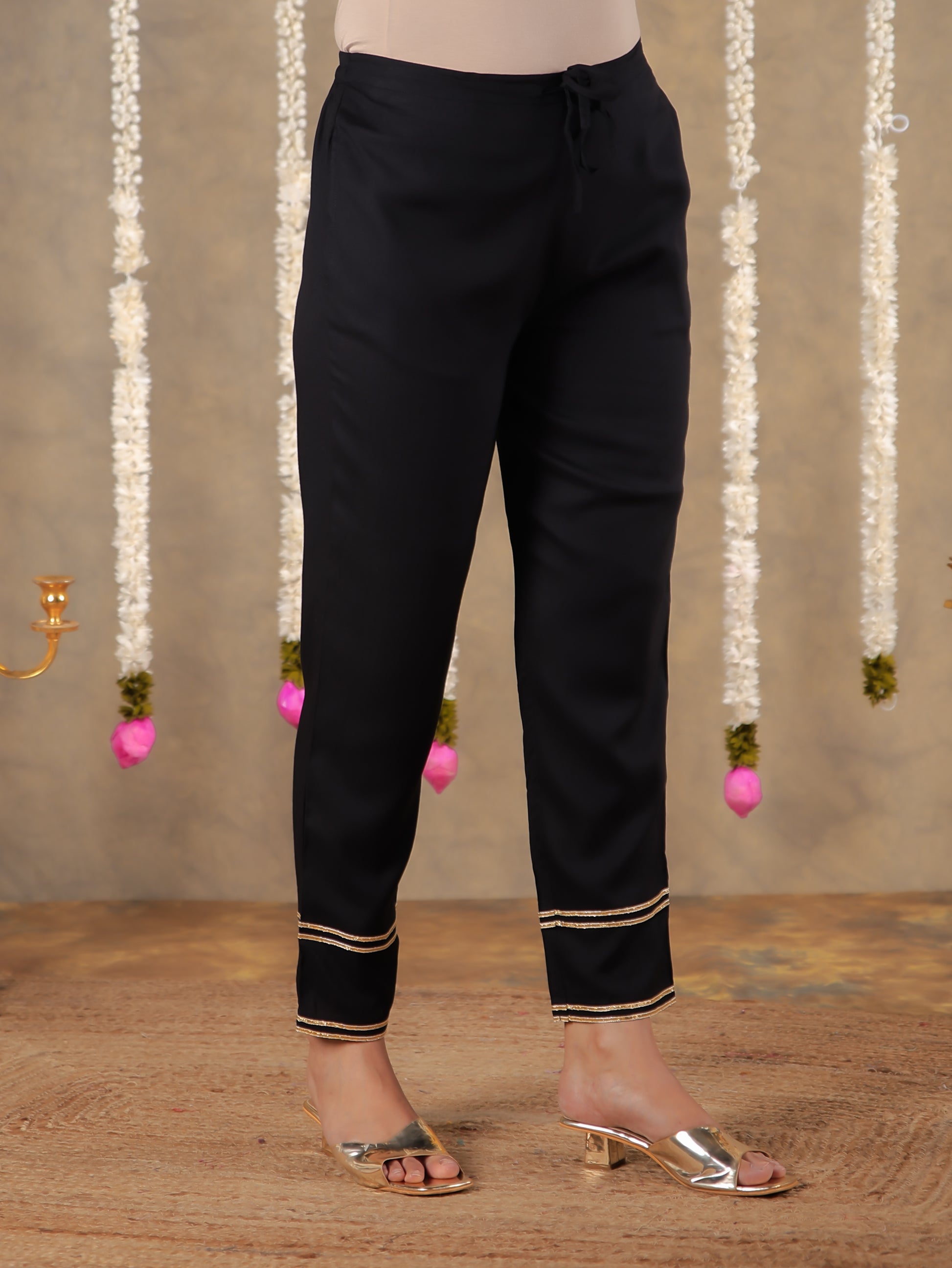 Designed for both comfort and versatility, these Viscose Black bottoms feature a stylish Solid design and pockets for added functionality. Perfect for office looks or weekend errands, they offer a flattering fit that works with a variety of tops. Pair with minimal accessories for a polished finish and enjoy effortless care.